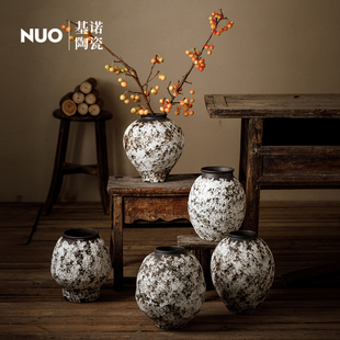 景德镇复古粗陶陶瓷花瓶干插花器民宿装 饰摆件做旧陶罐花插干花器