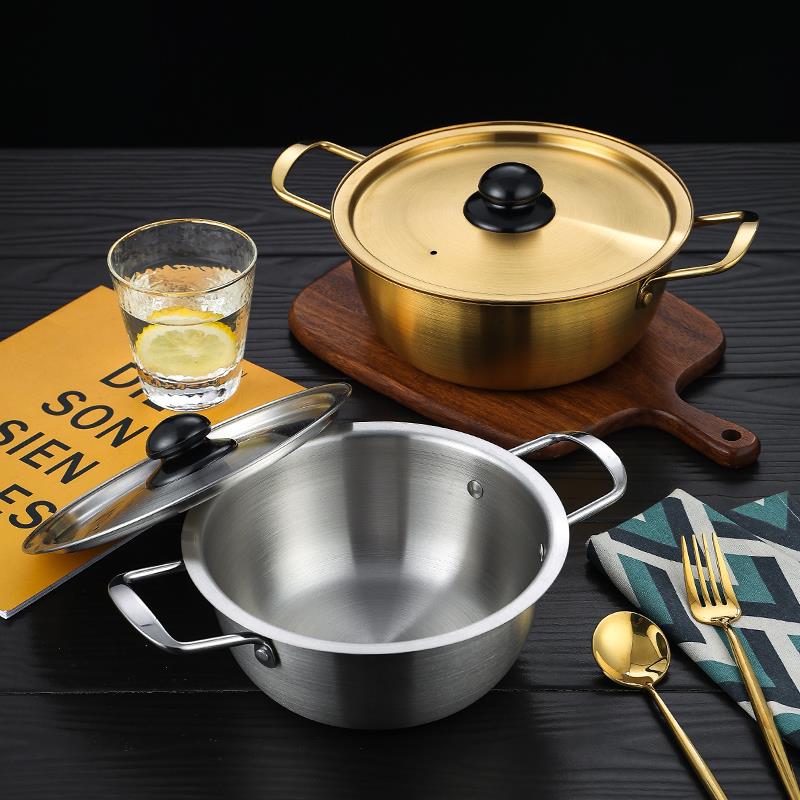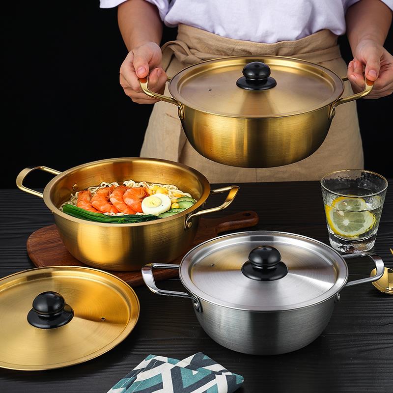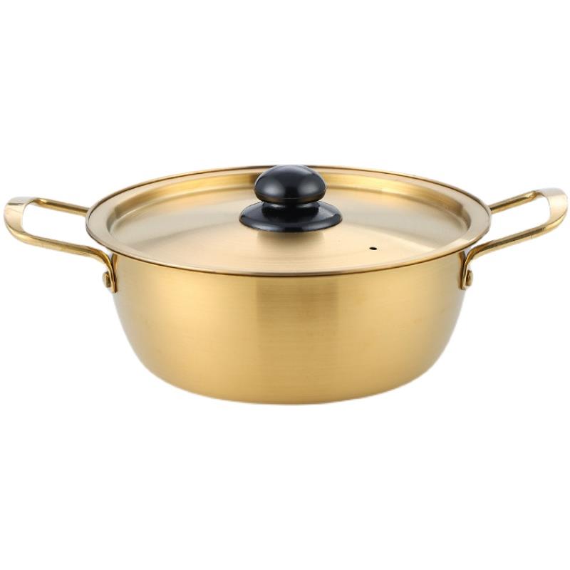 韩国拉面锅不锈钢金色泡面锅韩式 网红双耳方便面锅电磁炉煮面锅