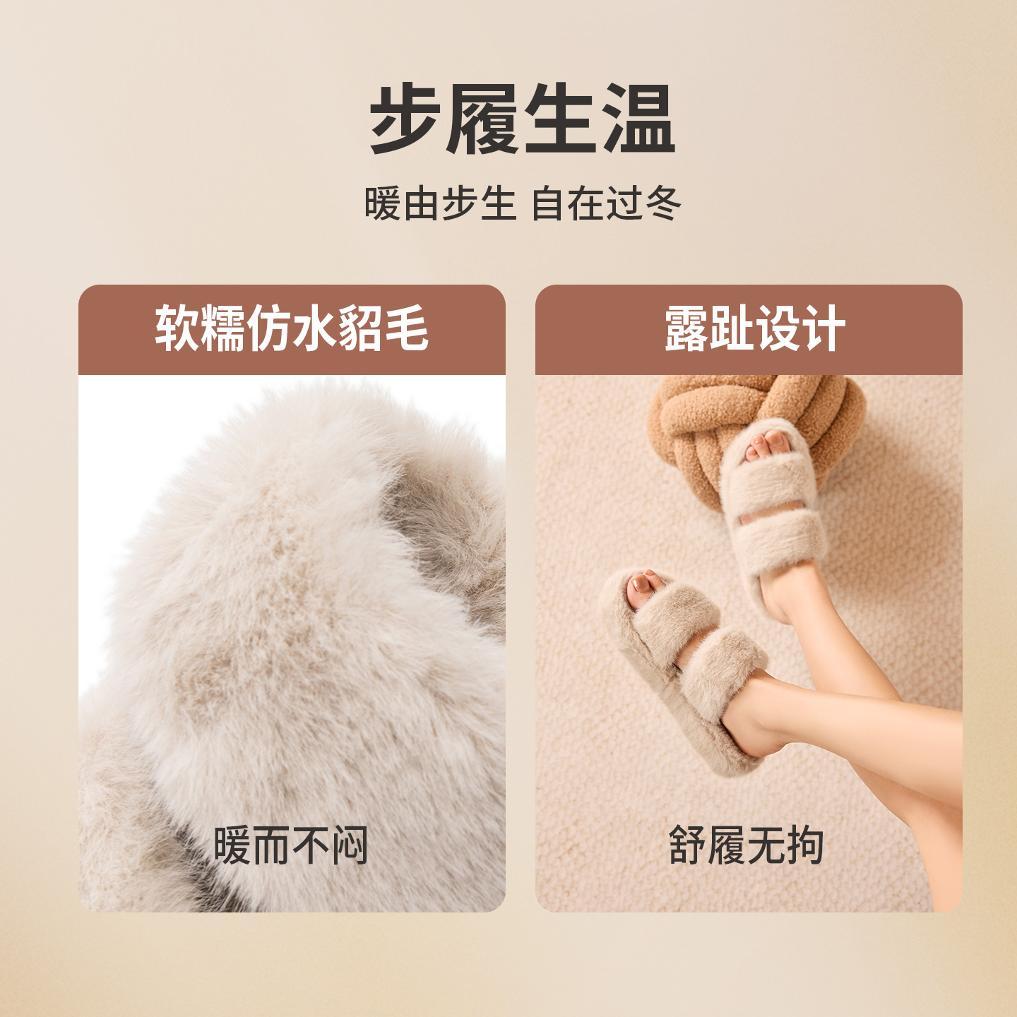毛毛拖时尚 奥康 雪地鞋 2025冬季 保暖家居拖露趾舒适增高厚底 女鞋