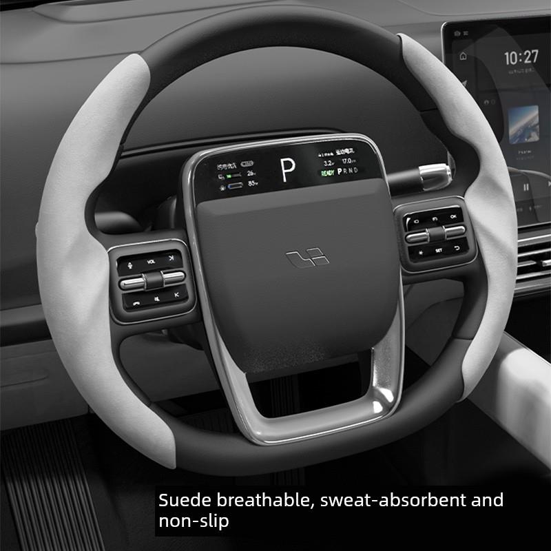汽车方向盘套超薄D型防滑麂皮绒把套翻毛皮反毛车把套四季 通用型