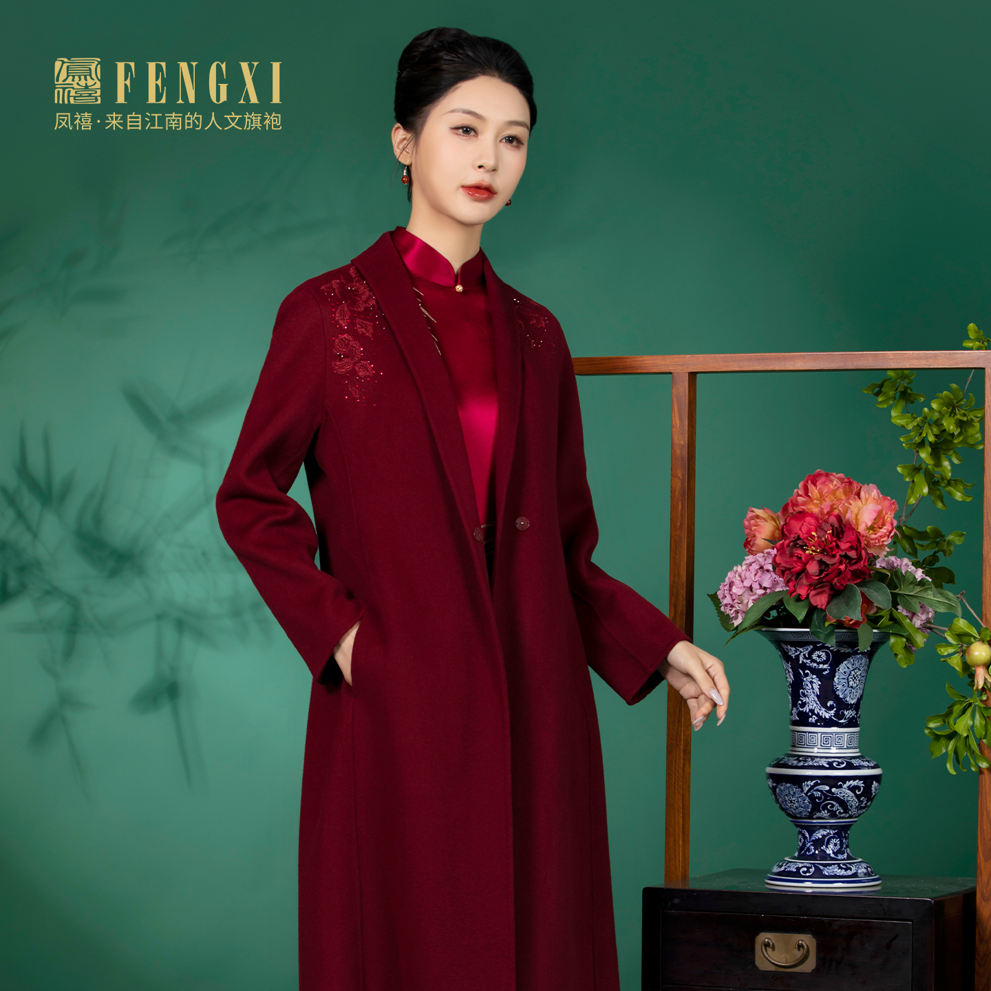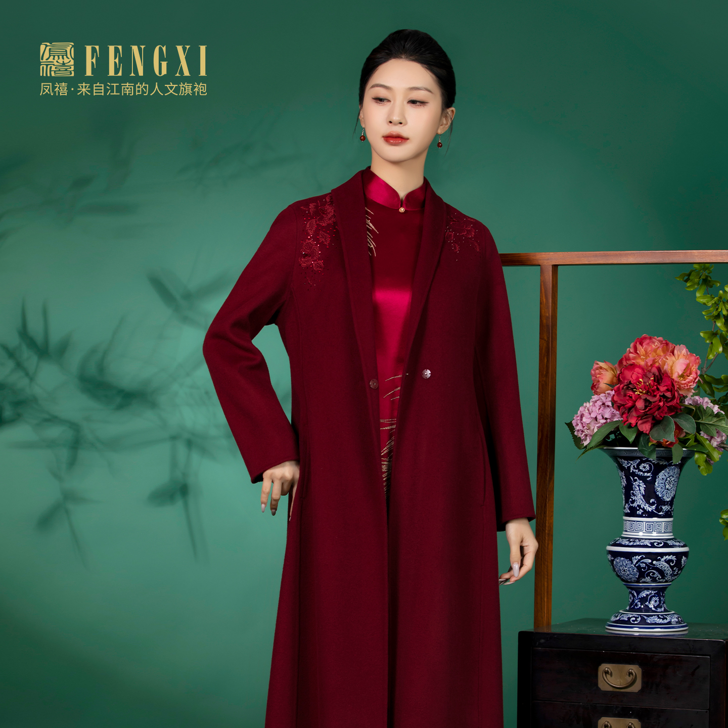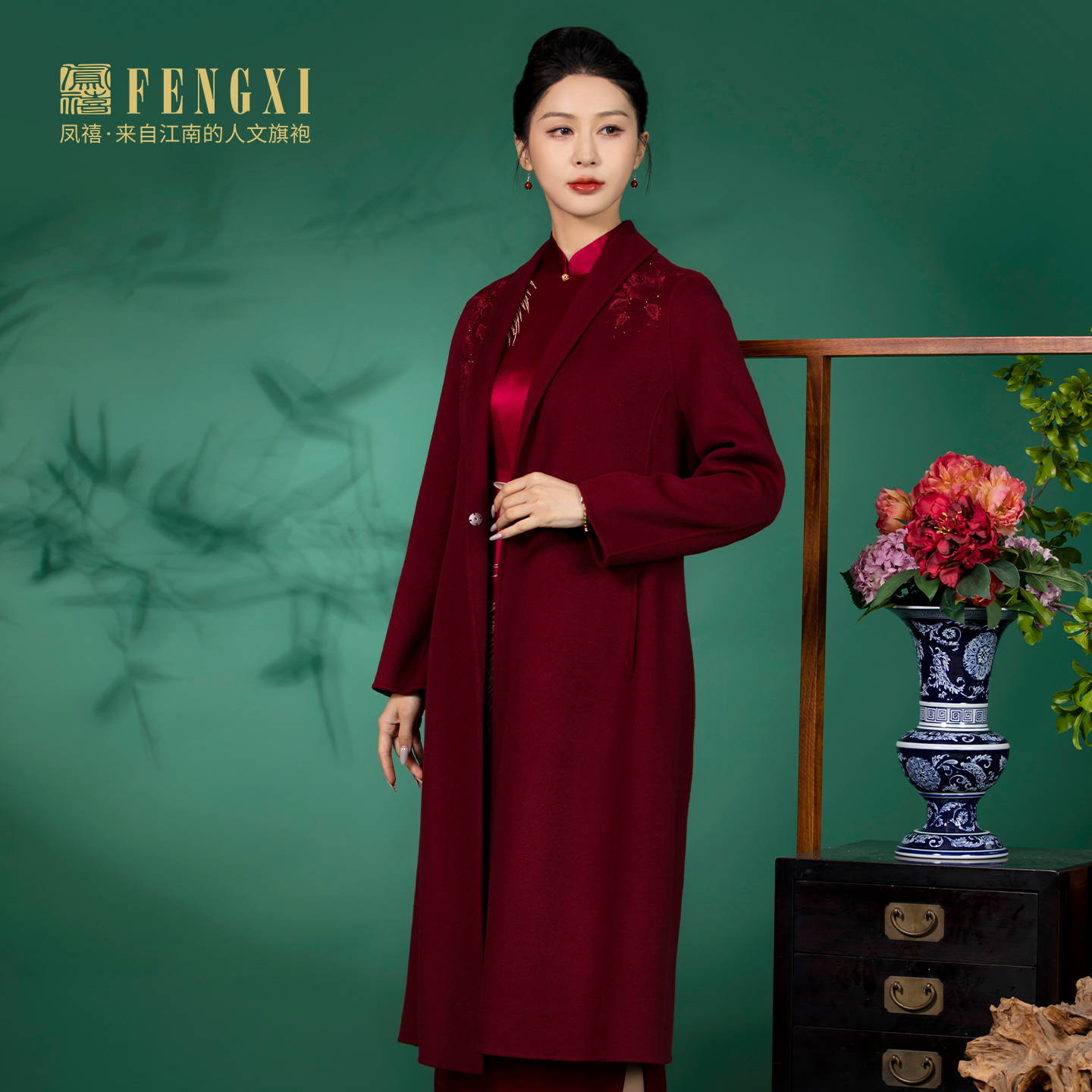 凤禧秋冬外套绵羊毛保暖婚庆喜妈妈双面呢大衣高级感气质2025新款