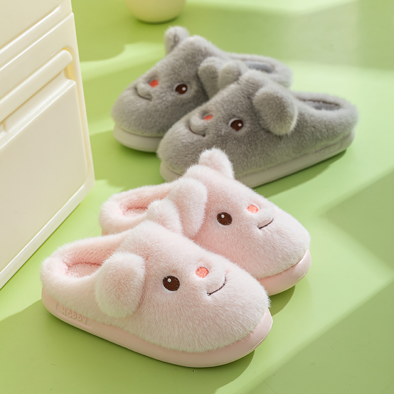 可爱室内居家防滑保暖外穿厚底舒适情侣款 卡通小熊棉拖鞋 女秋冬季
