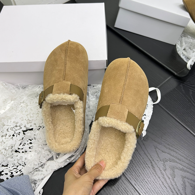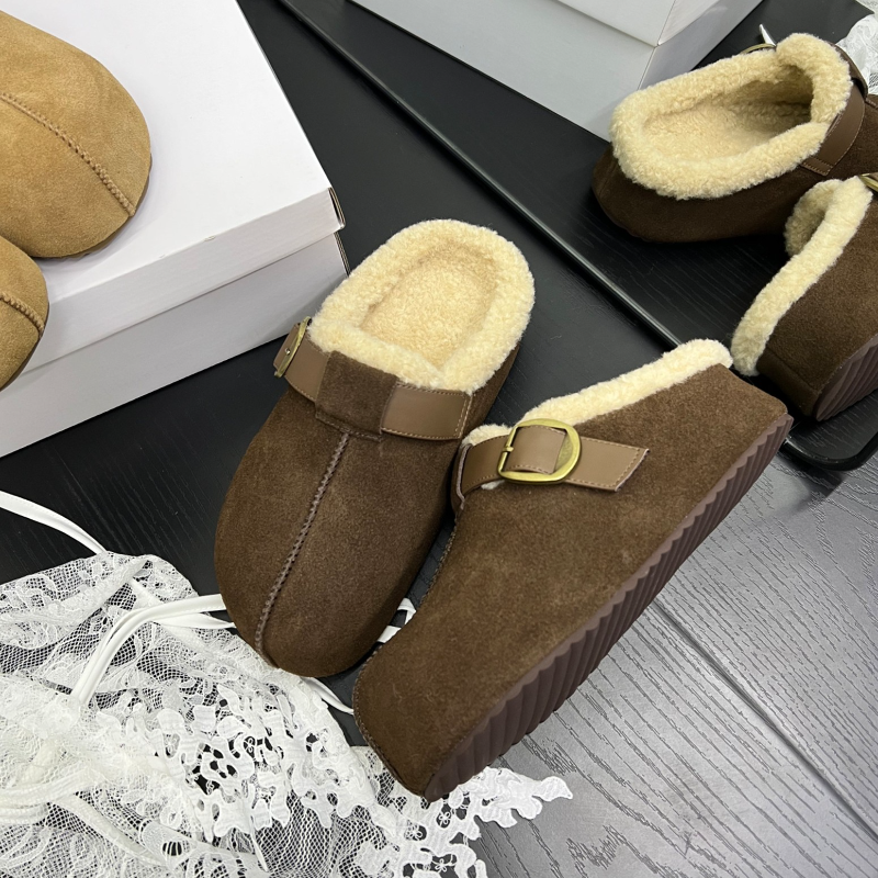 一脚蹬保暖加绒棉拖鞋 秋冬季 女外穿2025新款 厚底勃肯包头毛毛拖鞋