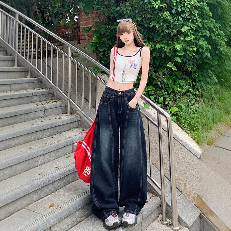 微喇牛仔裤 王家有鱼 新款 2025秋季 中高腰不贴腿辣妹女 古早蓝灰
