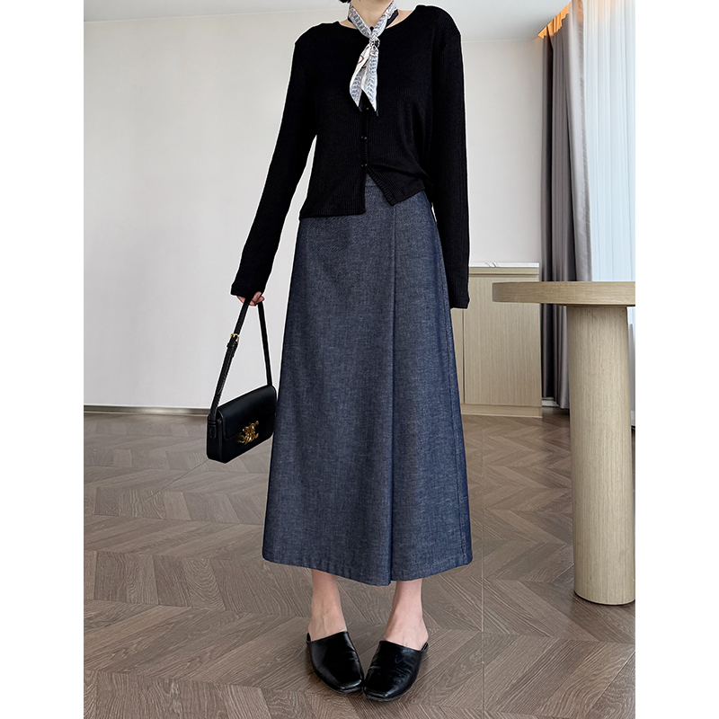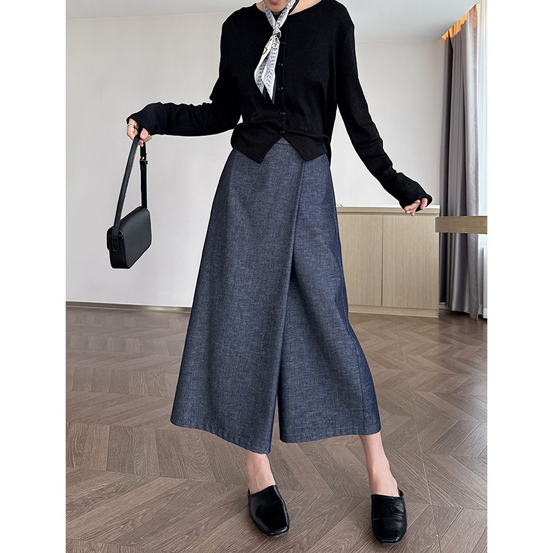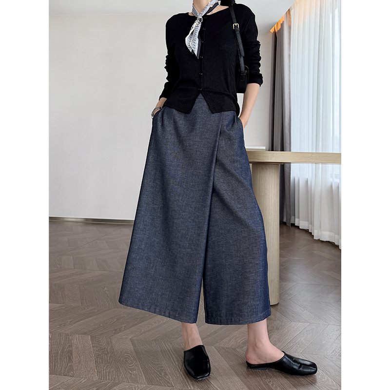 半身长裙 女春秋高腰垂感天丝莱赛尔亚麻阔腿裤 仿牛仔九分西装 裙裤