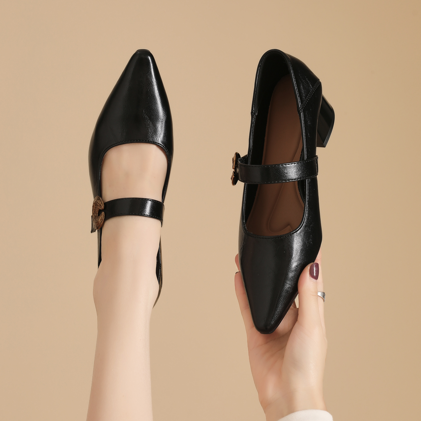 仙女风瓢鞋 秋季 浅口百搭中跟奶奶鞋 大码 真皮单鞋 女鞋 粗跟2025新款