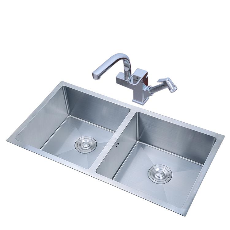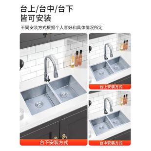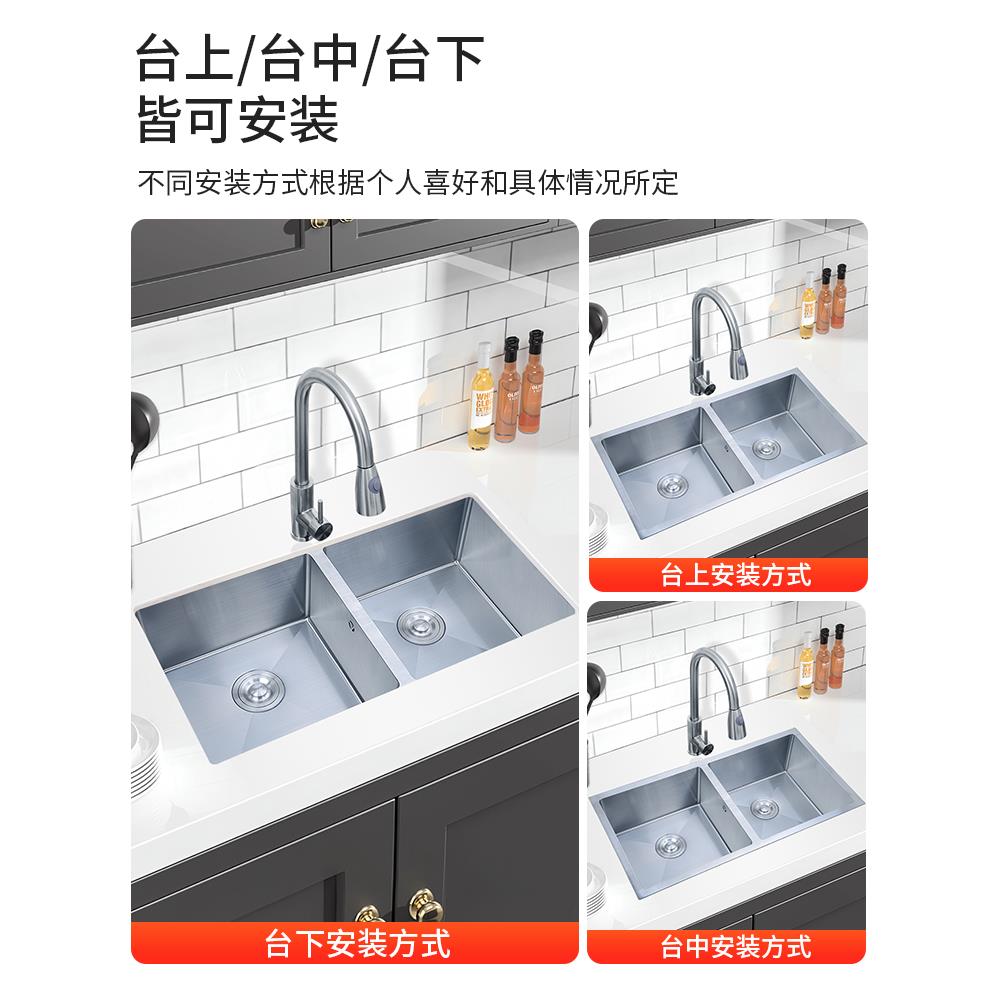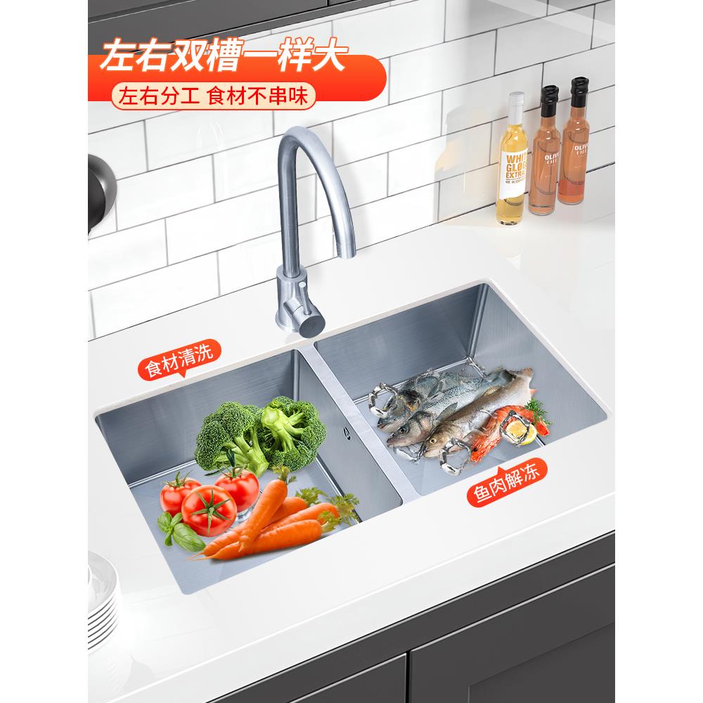 加厚食品级Sus304不锈钢水槽大型双槽厨房水槽家用柜台下盆