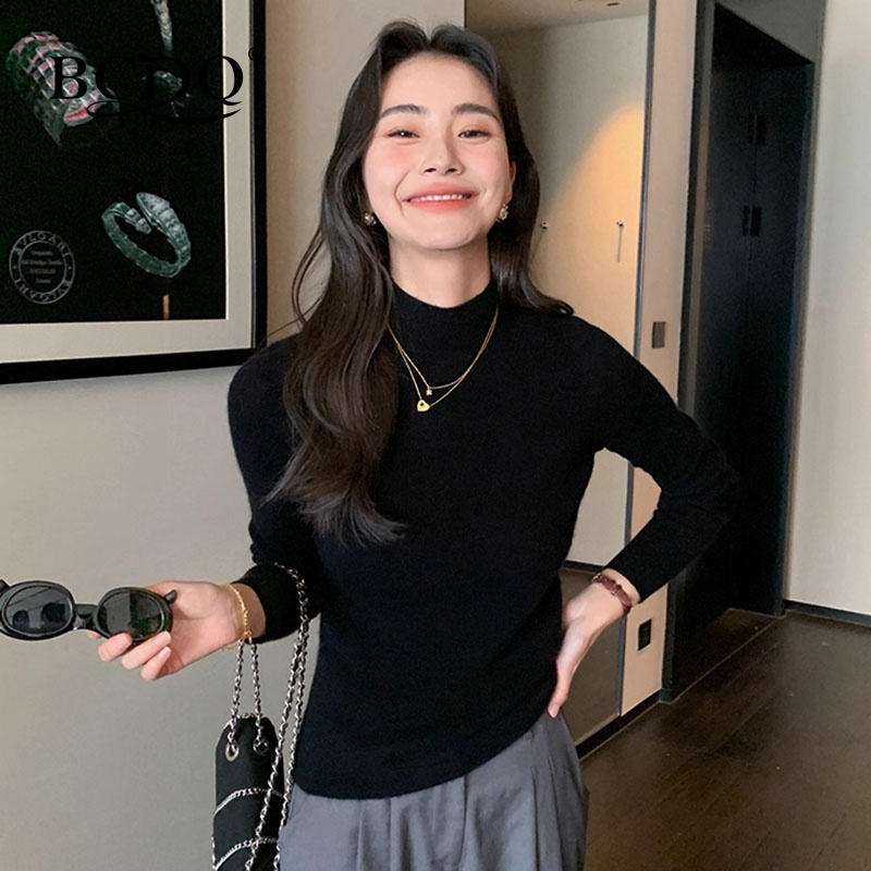 纯色保暖内搭打底毛衣 春秋新款 恒源祥半高领针织衫 女100纯羊毛衫