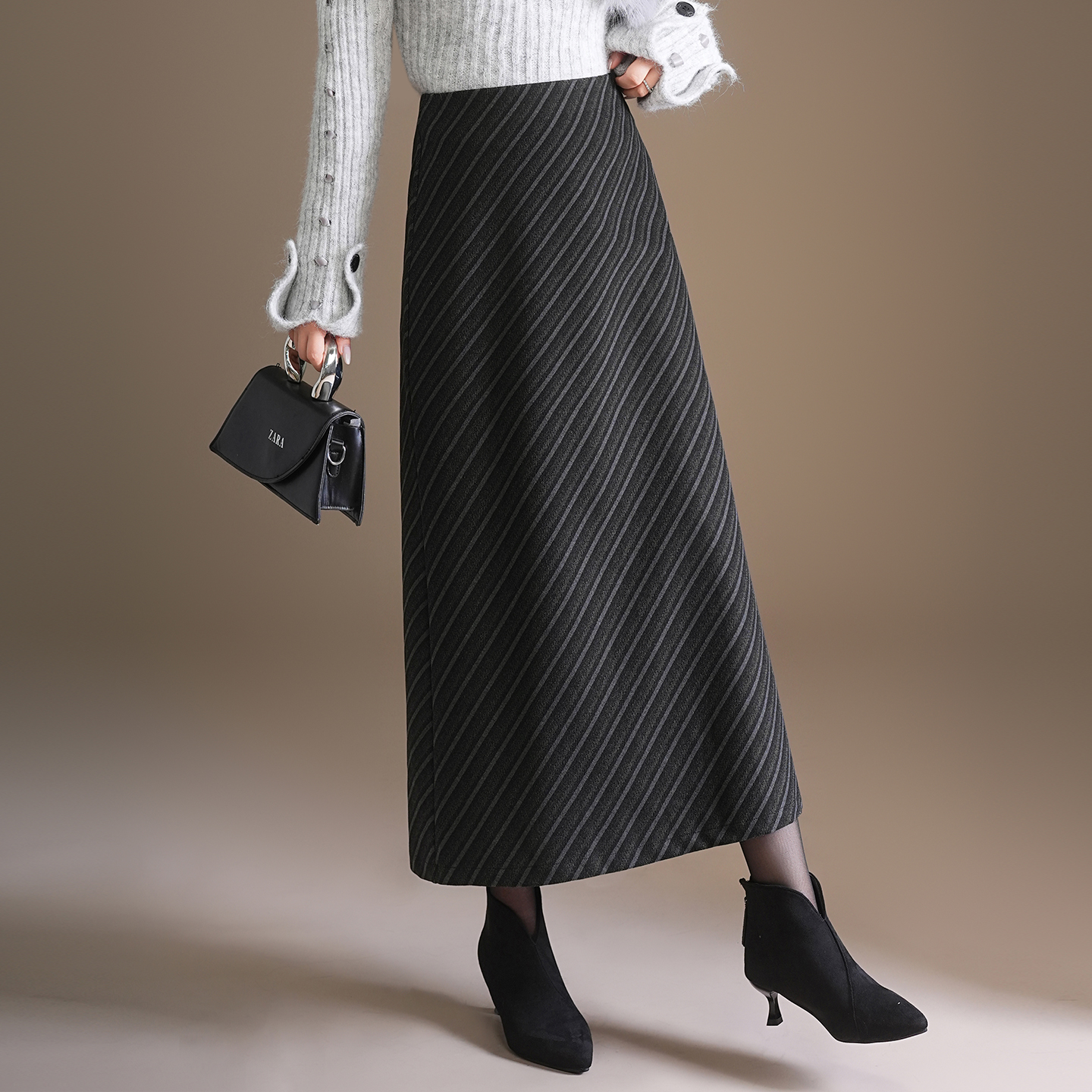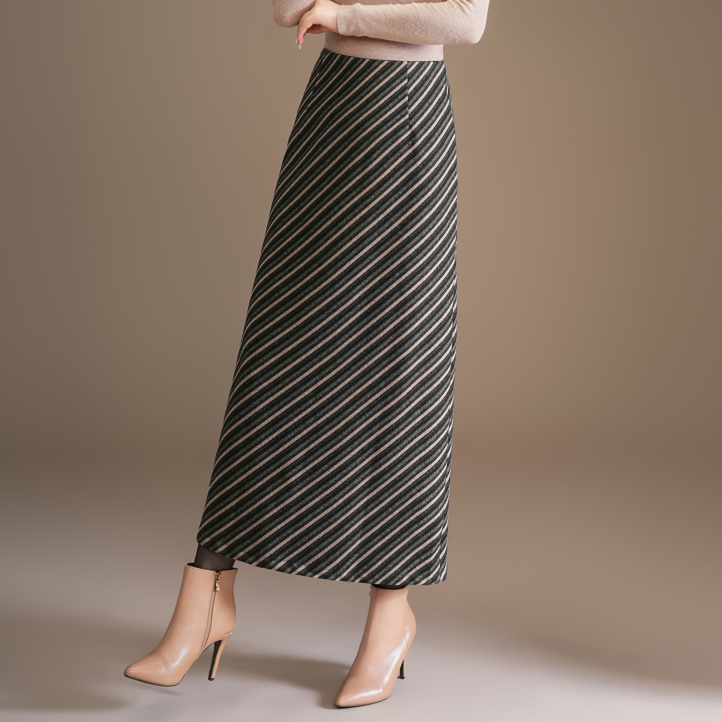 509092 气质流苏摆不规则半身裙子女装 三福格子长裙女2025新款 冬季