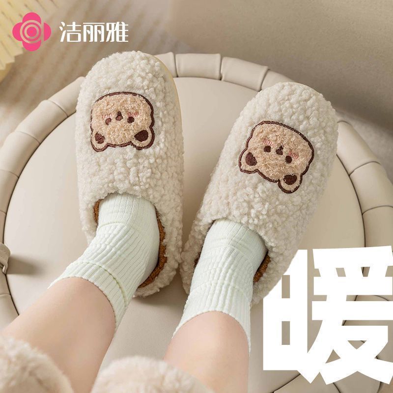 包头小熊情侣棉拖鞋 防滑家居室内新款 女士秋冬季 洁丽雅毛绒棉拖鞋