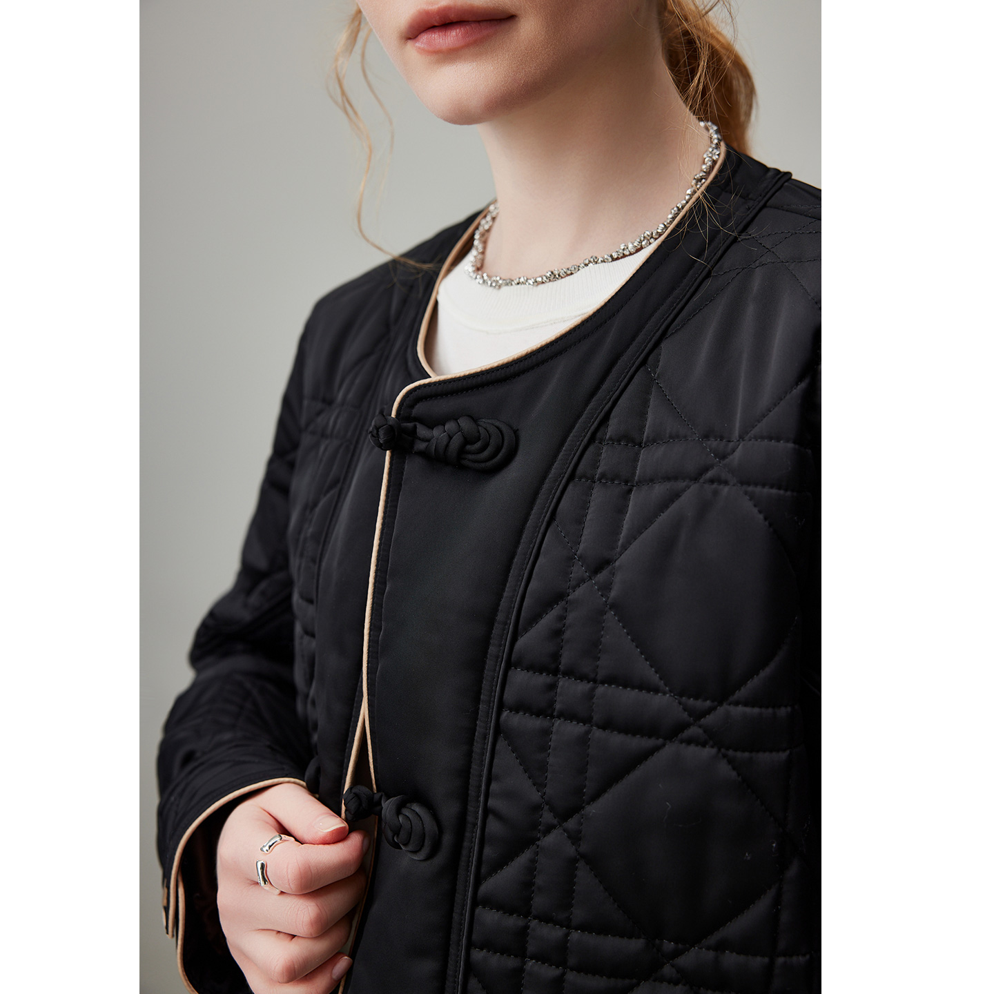 外套1303983 菱格绗缝翻领宽松巴恩风美式 HM女装 棉服2025秋冬新款