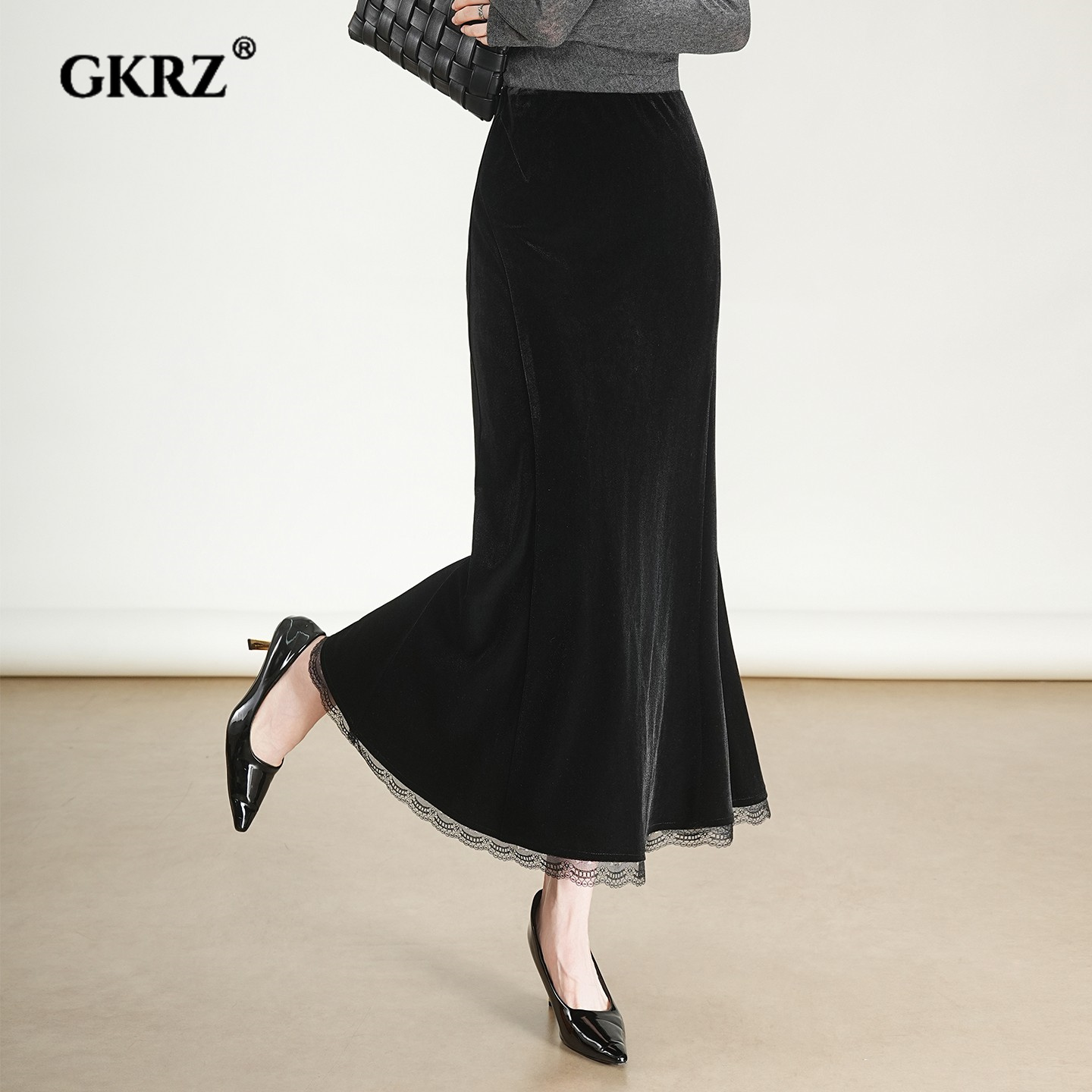 灰色羊毛糯米半身裙女2025秋冬a字裙包臀裙开叉显瘦针织裙中长裙