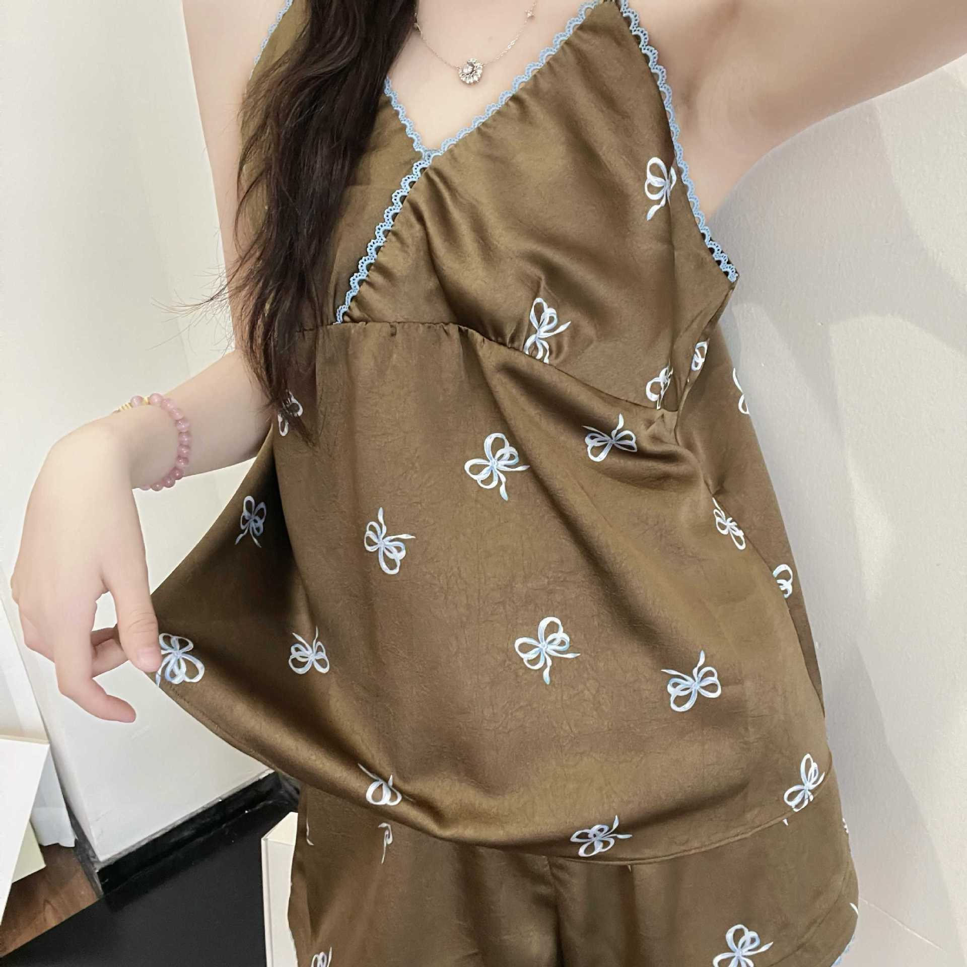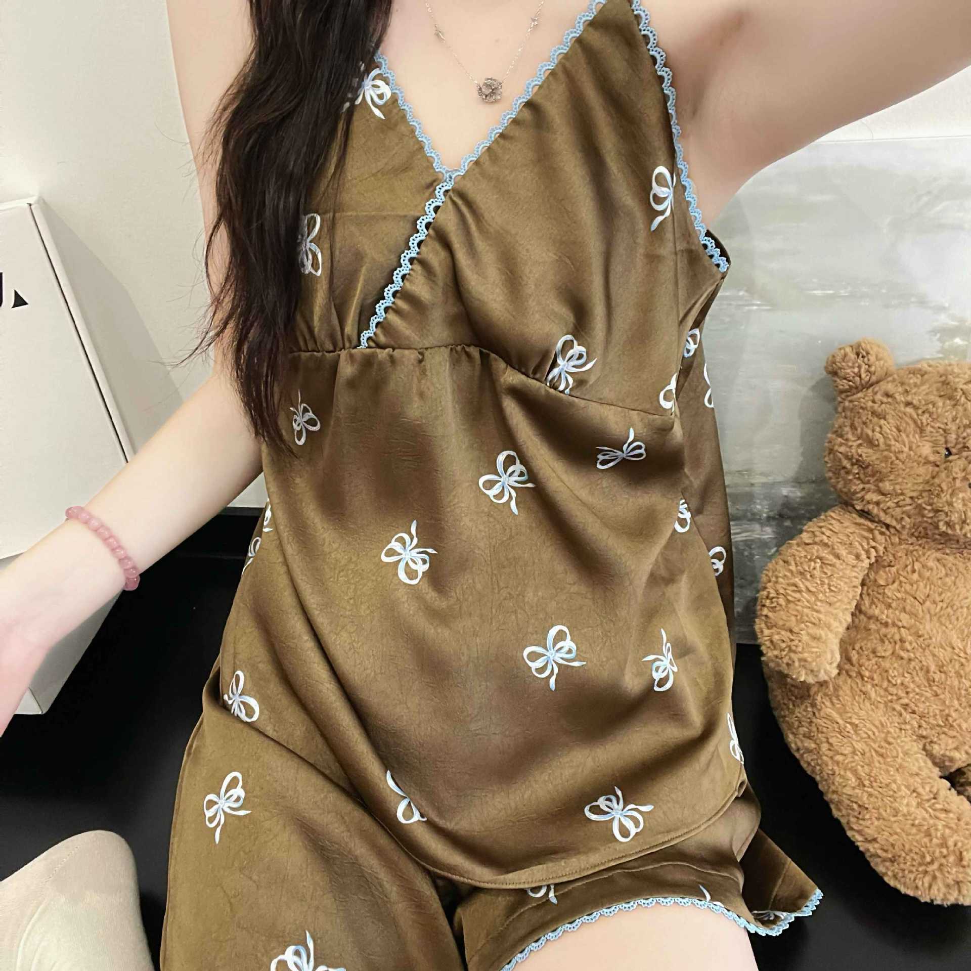 套装 短裤 居家服潮 大码 韩系设计感冰丝结印花吊带睡衣女款