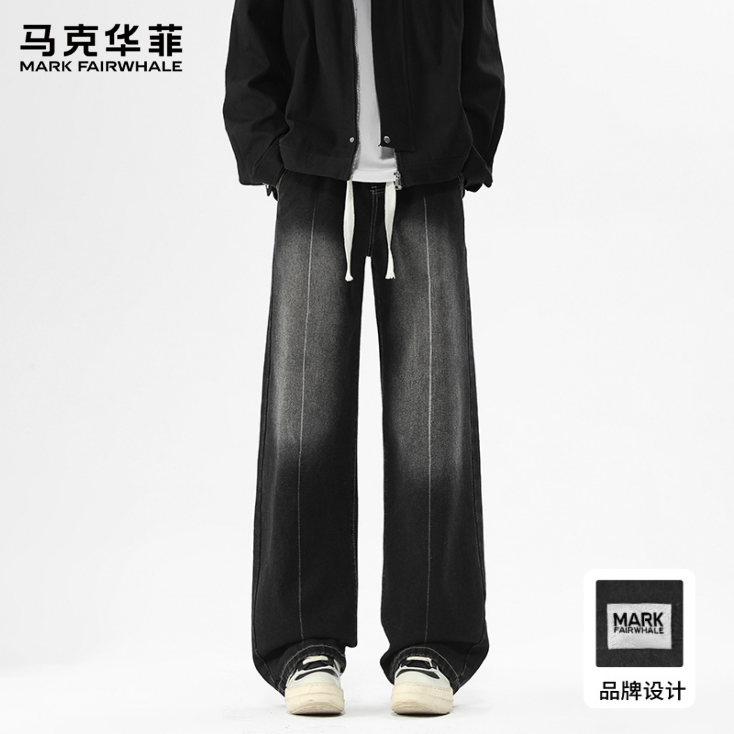直筒宽松baggy拖地裤 男长裤 子男潮 阔腿弯刀牛仔裤 迈特优美式