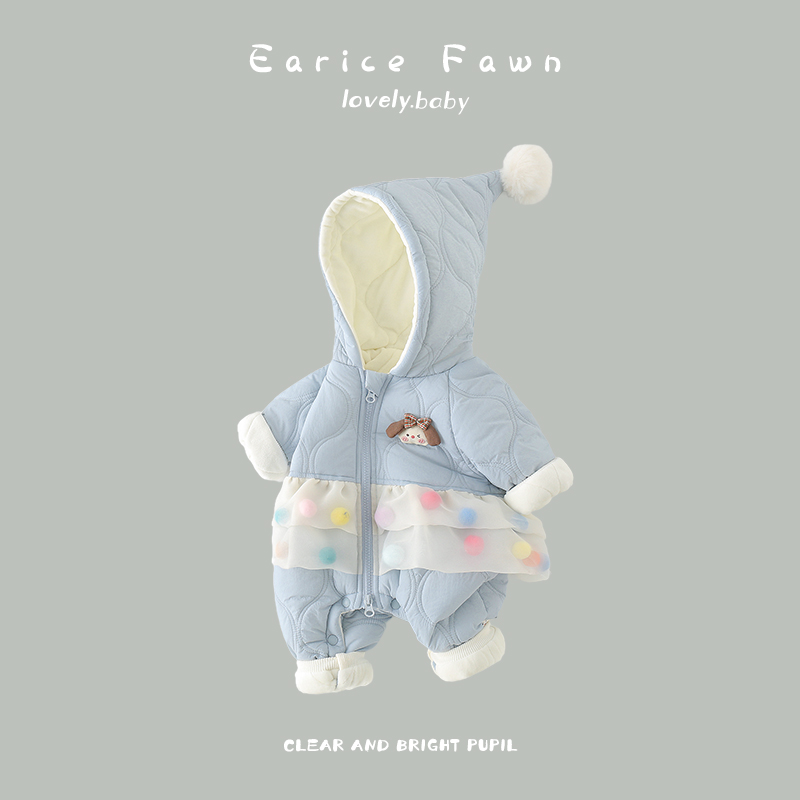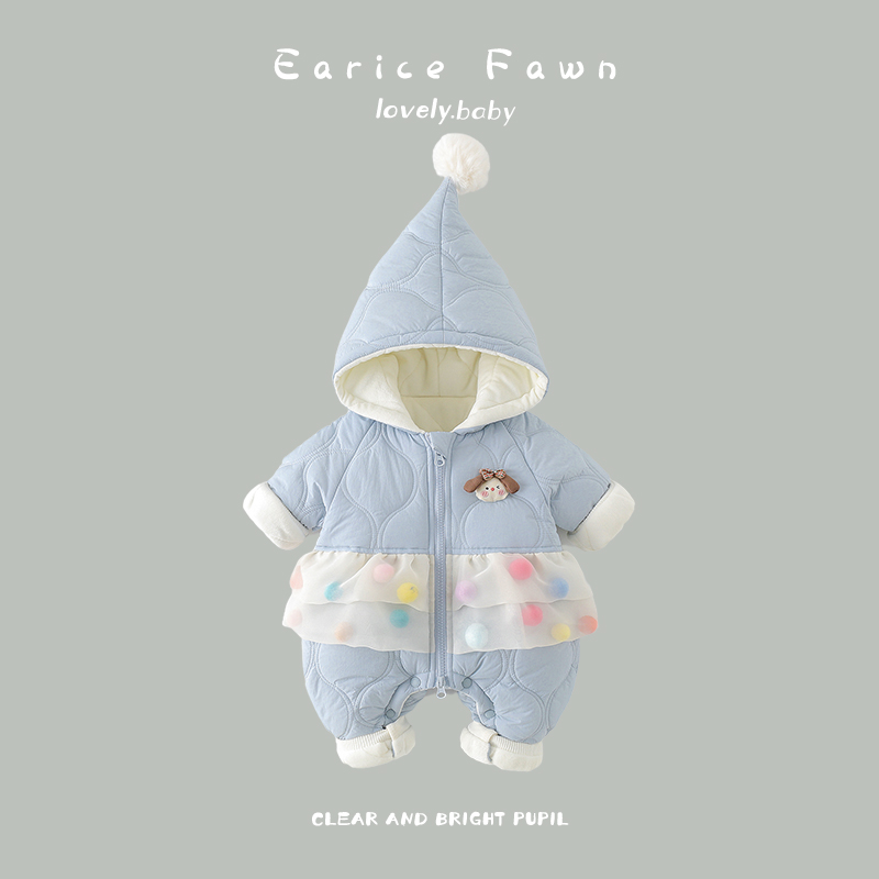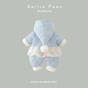 新生婴儿冬装 夹棉加厚哈衣洋气可爱连体衣满月衣服 棉衣女宝宝冬季