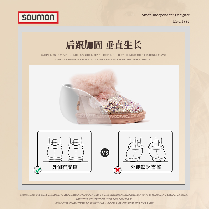 844834 加绒加厚保暖厚底圆头女毛毛鞋 三福雪地靴女冬季 2025新款