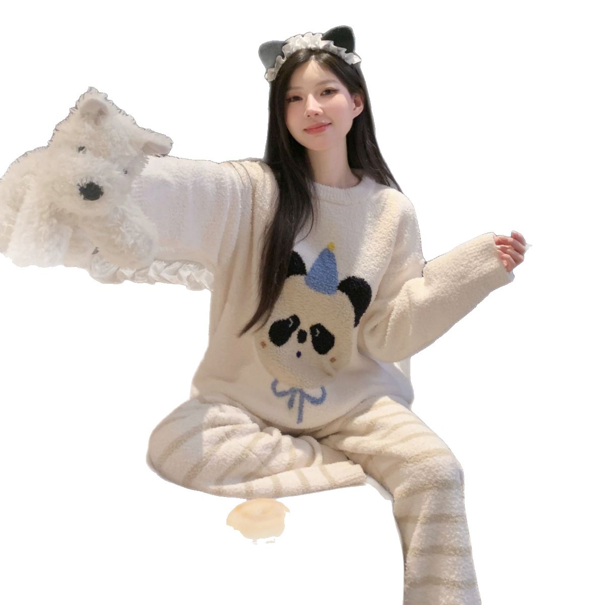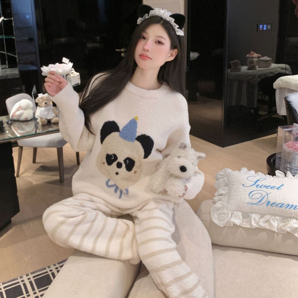 情侣睡衣 tbh野兽派家居熊猫嘭嘭法兰绒家居服套装 可外穿秋冬长袖