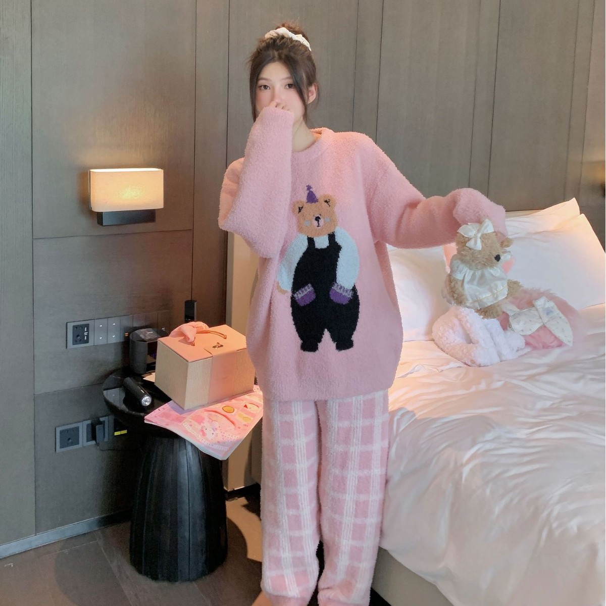 红豆珊瑚绒睡衣女羊羔绒抗静电加厚桂花绒甜美保暖外穿家居服套装