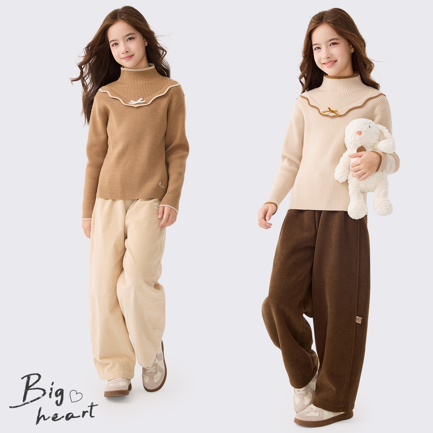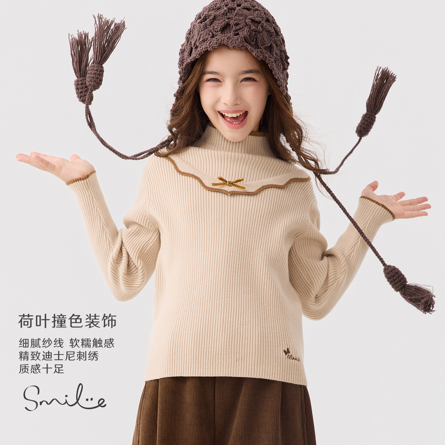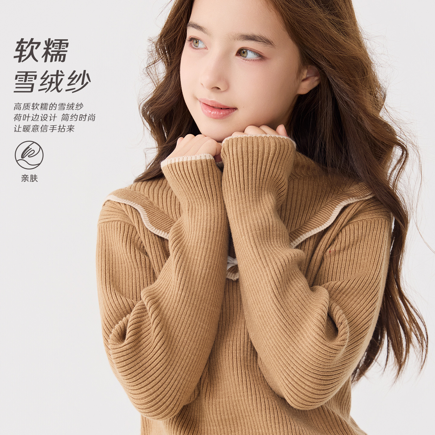 上衣中大童洋气保暖线衣 儿童半高领针织打底衫 女童毛衣新款 秋冬装