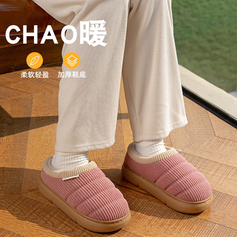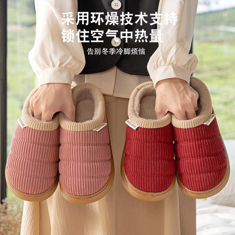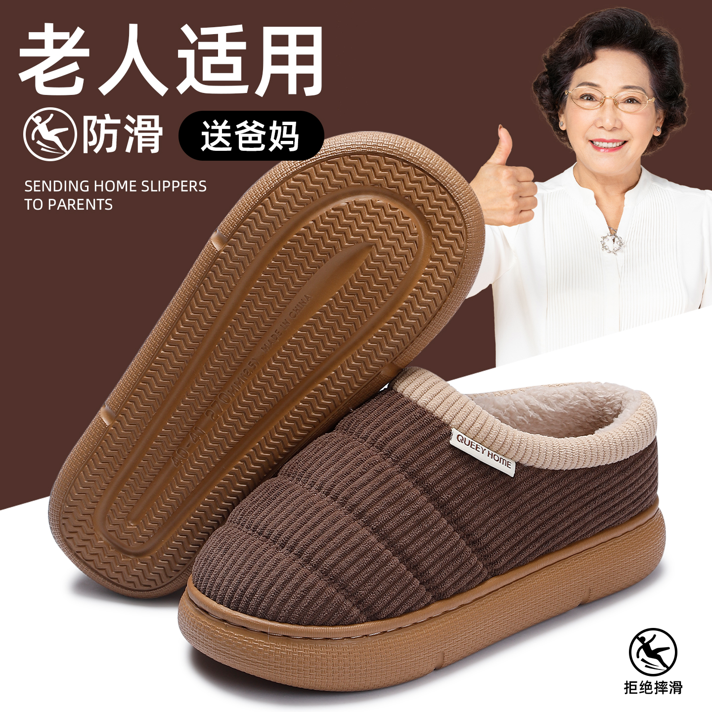 棉拖鞋 女保暖加绒厚底防滑抑菌防臭2025新款 男 老人冬季 包跟棉拖鞋