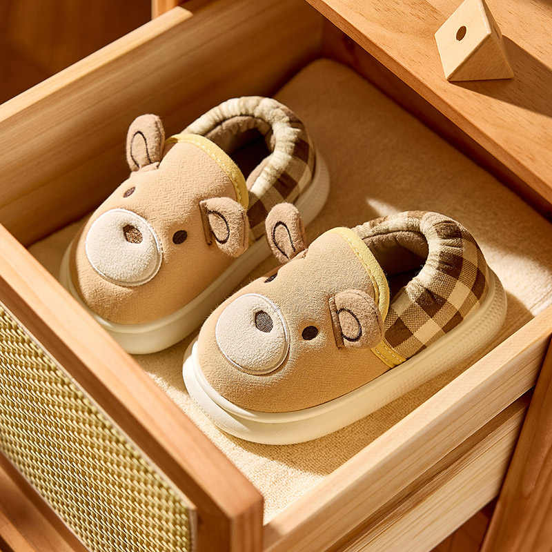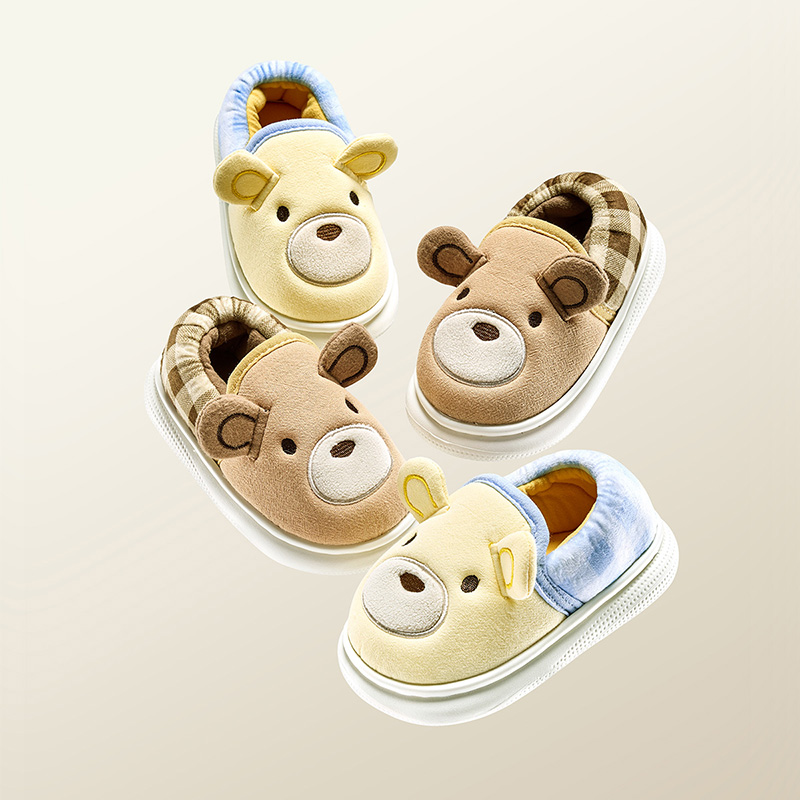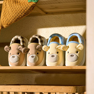 女宝宝鞋 儿童包跟棉拖男童棉鞋 子 小熊卡通可爱家居拖鞋 宝宝棉拖鞋