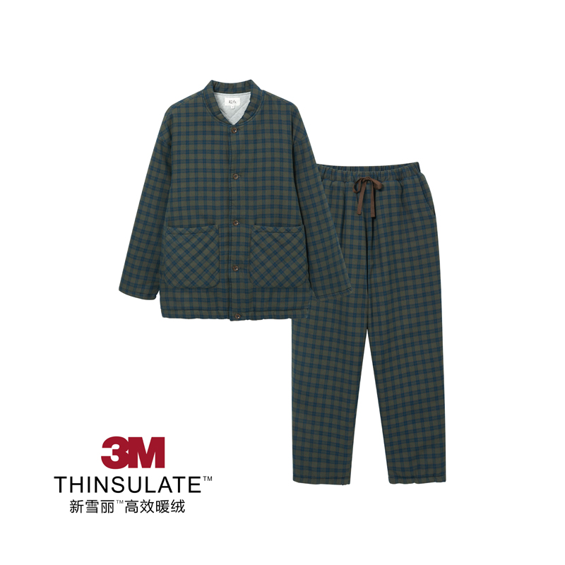 冬季 家居服加厚保暖套装 格子3M夹棉男女情侣同款 长裤 睡衣长袖 新款