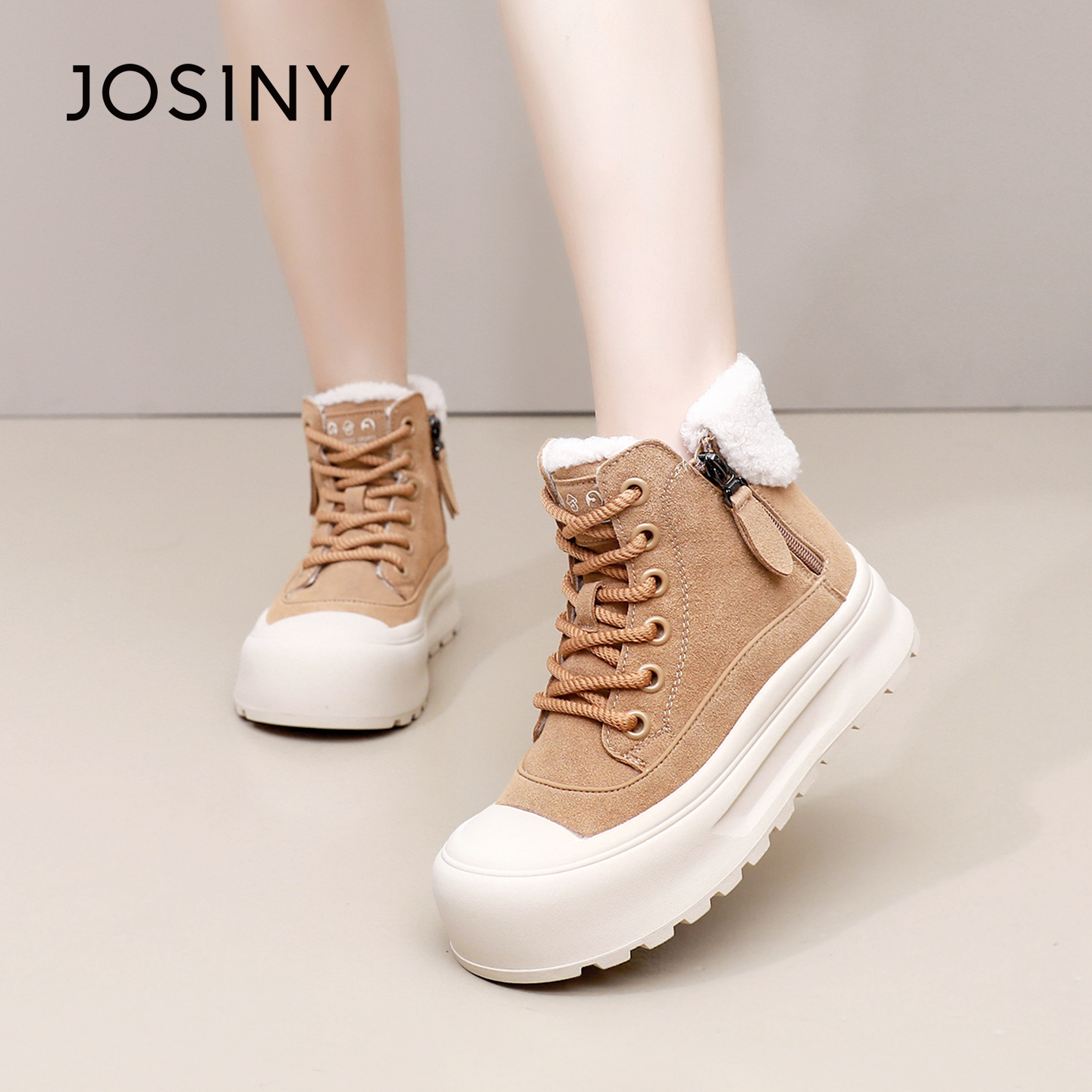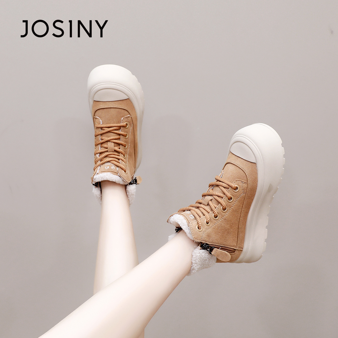 加绒靴子美拉德 冬季 达芙妮堆堆短靴女2025新款 秋冬厚底马丁靴女款
