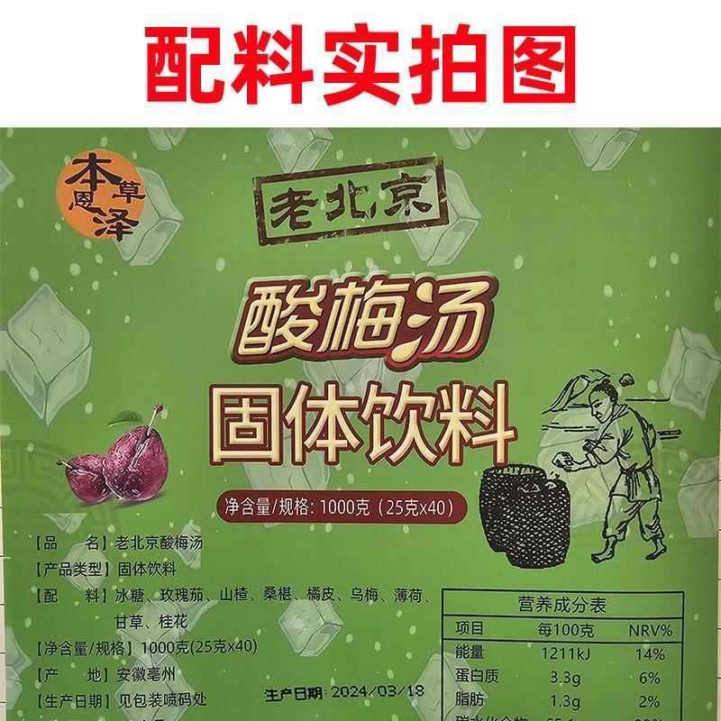 归田园酸梅汤桂花酸梅汤粉酸梅晶正宗老北京独立包装 酸甜免煮