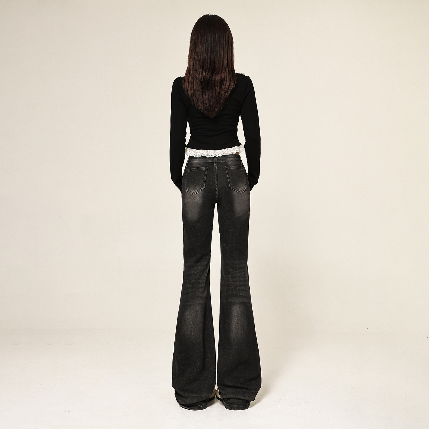 显瘦弹力喇叭裤 黑色辣妹微喇牛仔裤 设计感高腰修身 新款 女2025秋季