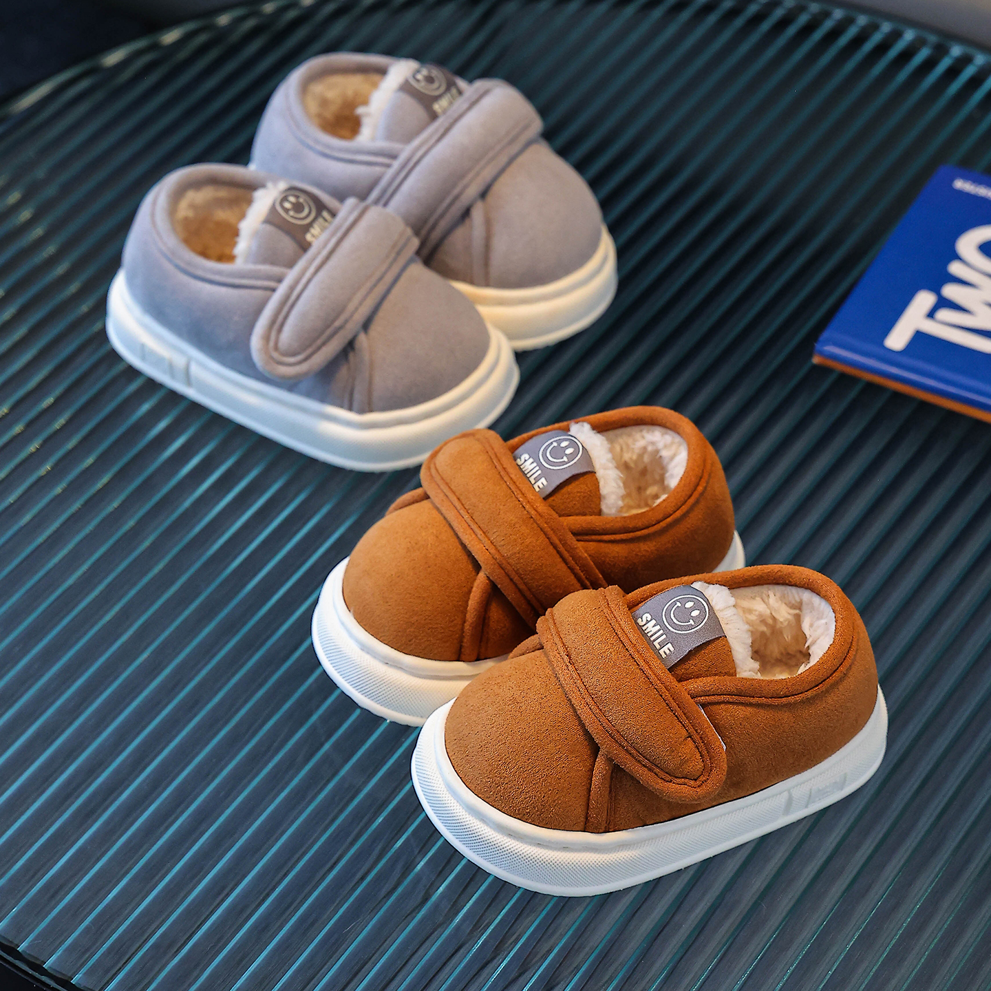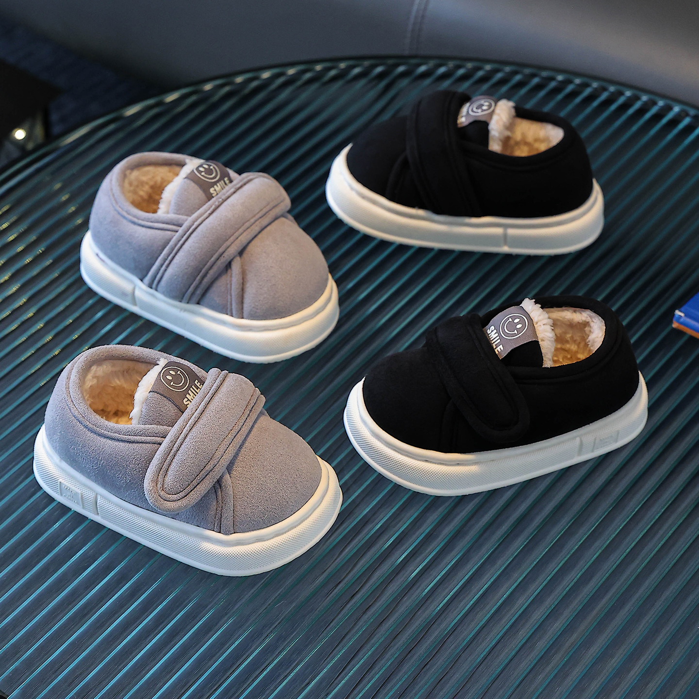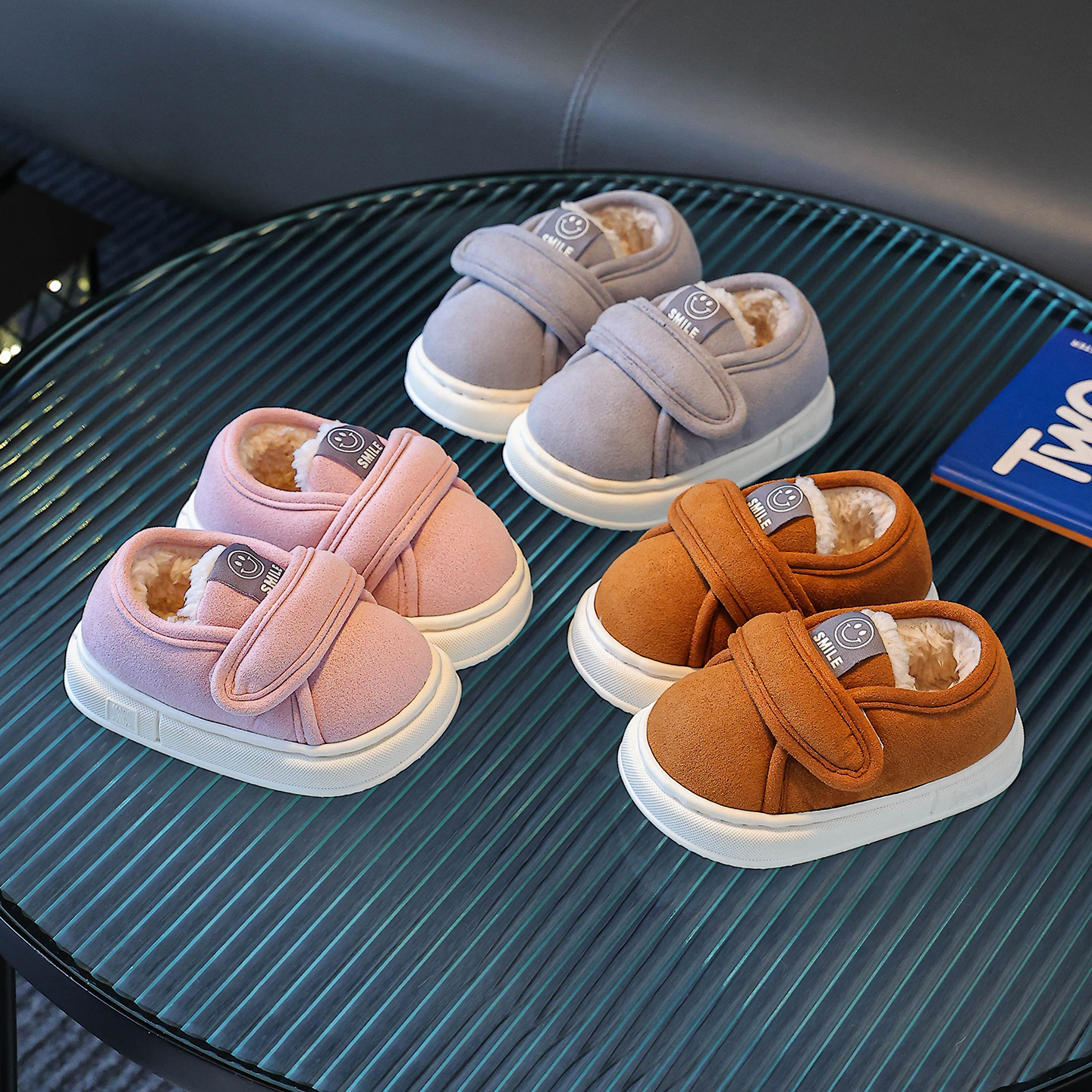 魔术贴板鞋 亲子居家防滑加绒加厚女款 学步红色 保暖女童棉鞋 冬季