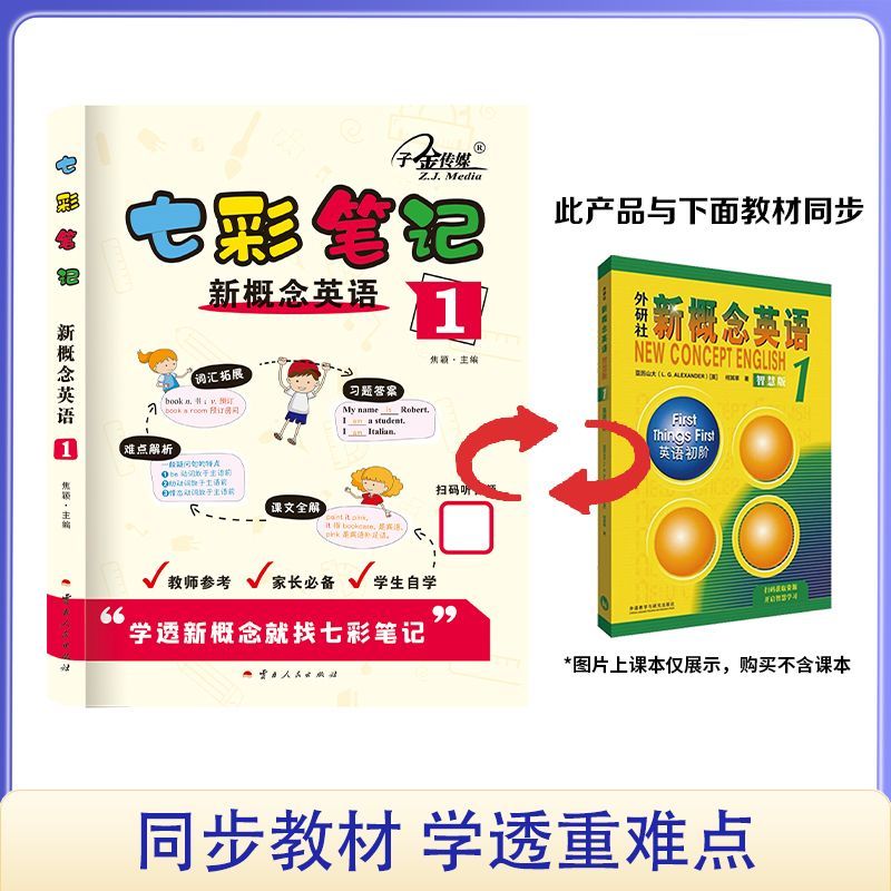 子金新概念英语七彩笔记1册2册同步教材完全解读课堂笔记智慧版 单词语法阅读理解初学者基础知识速记预习复习学霸笔记核心考点大全