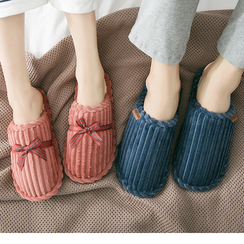 防滑可爱休闲情侣家居保暖灯芯绒鞋 男士 室内毛绒韩版 女冬季 棉拖鞋