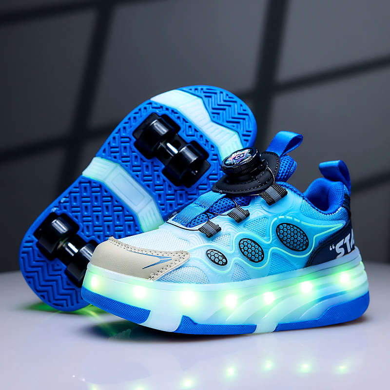 儿童轮滑鞋 男童暴走鞋 四轮学生带轮子溜冰鞋 2025新款 男孩纽扣 秋季