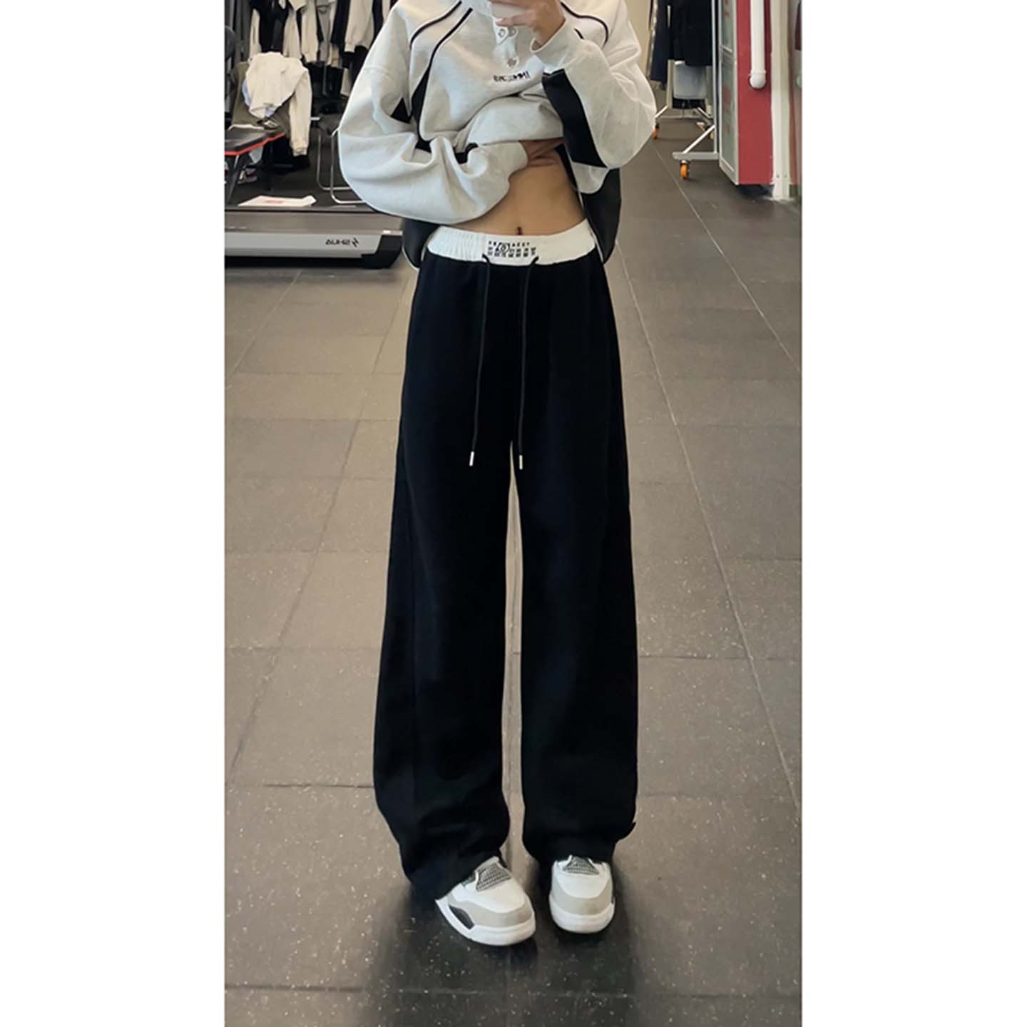 子大码 窄版 运动弯刀卫裤 女春秋2025新款 小个子加长黑色灰色 阔腿裤