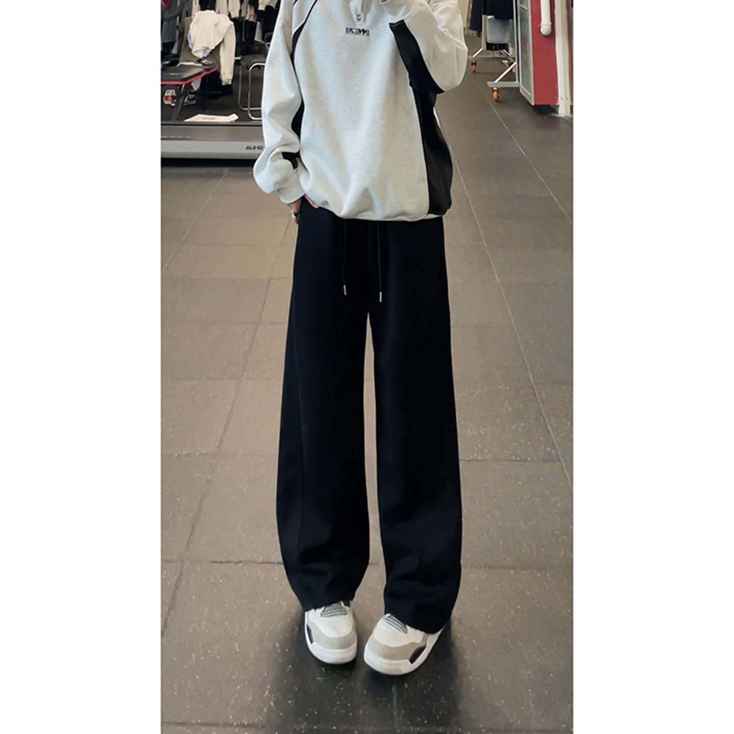 宽松阔腿百搭休闲裤 潮流垂感运动长裤 男秋季 V37重磅黑色直筒卫裤