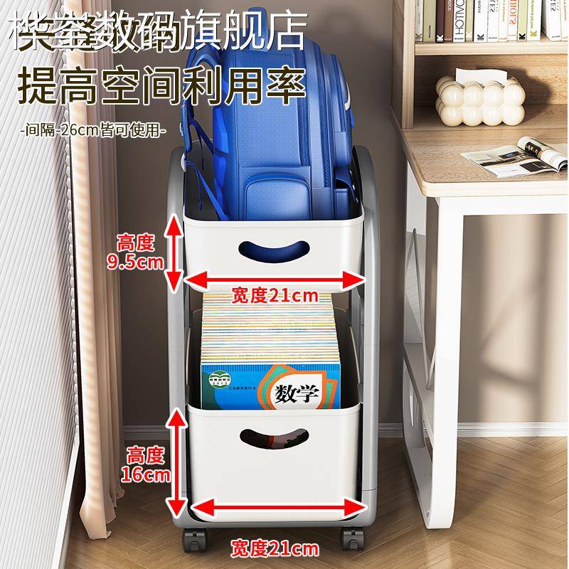 桦崟书包置物架可移动小推车书本书籍桌边收纳柜学生宿舍多功能收纳架摆件垫垫