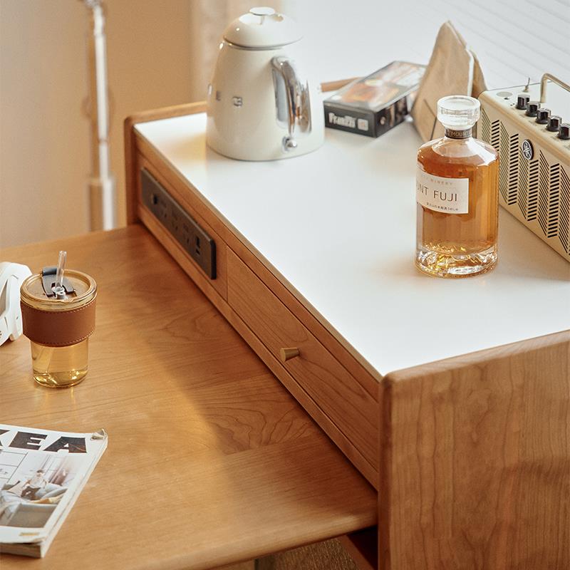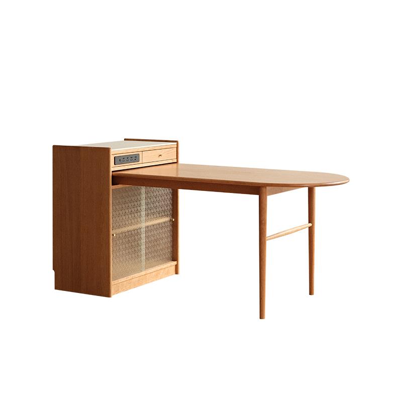 电动伸缩法式 奶油胡桃中古岩板简约高级岛台餐桌一体