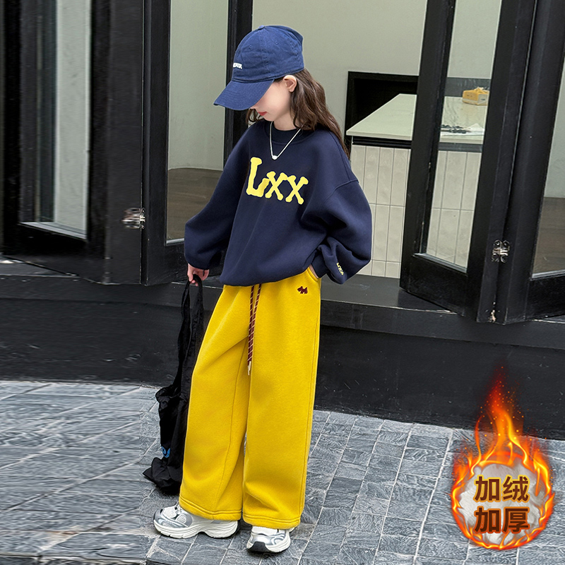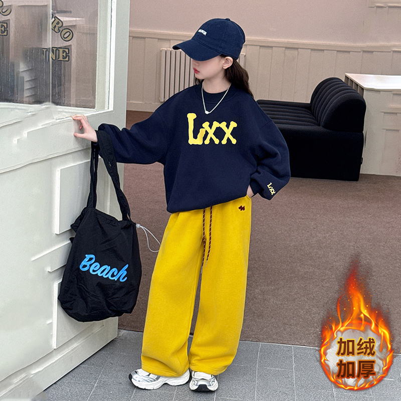 休闲两件套女孩童装 女童加绒卫衣运动服套装 中大童韩版 新款 潮 冬季