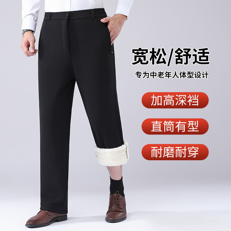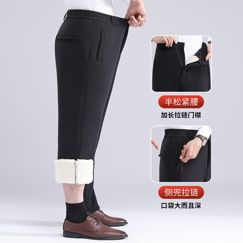 羊毛 弹力休闲长裤 蚕丝 2025秋冬加绒加厚防风裤 天丝 五只白鹅