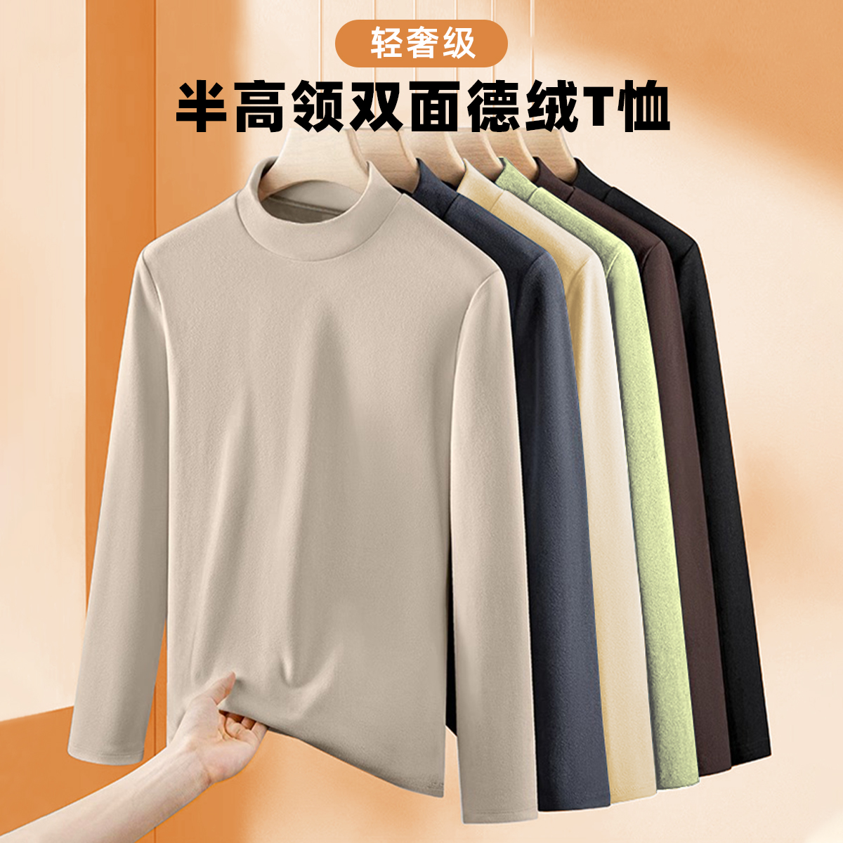 t恤半高领加绒上衣男冬装 回力德绒打底衫 保暖长袖 双面绒冬季 男士
