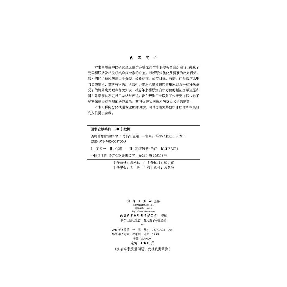 实用糖尿病治疗学 肖新华主编 可供内分泌代谢专业医师阅读 正版 为其他临床医师等提供参考 9787030687005 包邮 社 科学出版