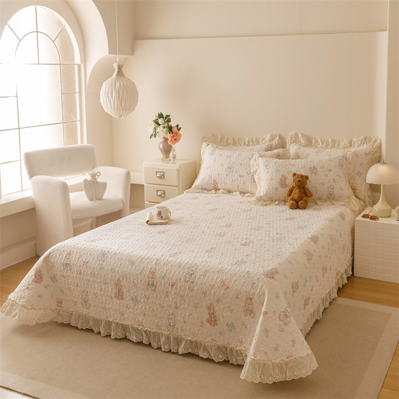A类韩国空气拉绒冬季 加厚床盖三件套花边床单防滑被单加绒炕铺盖