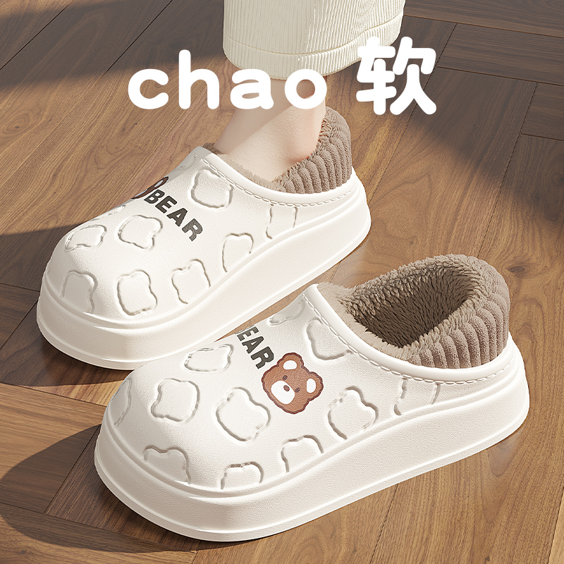 女款 毛绒拖鞋 秋冬季 室内家居防滑包跟11月子鞋 2025新款 防水棉拖鞋