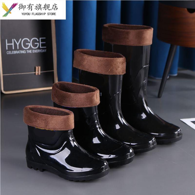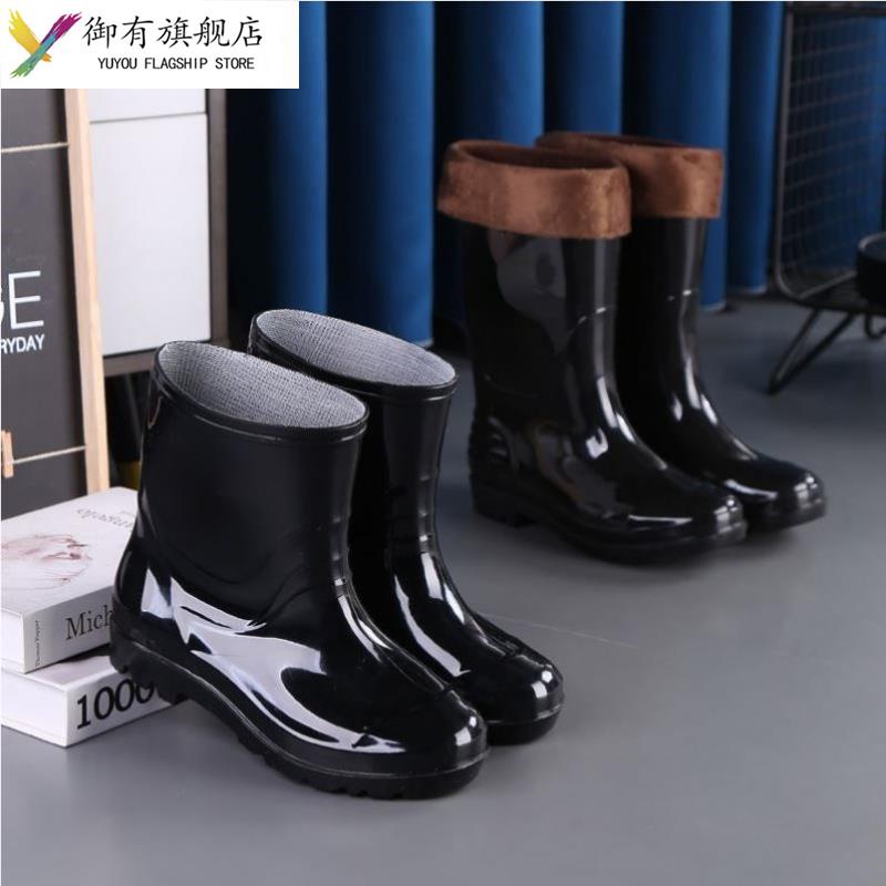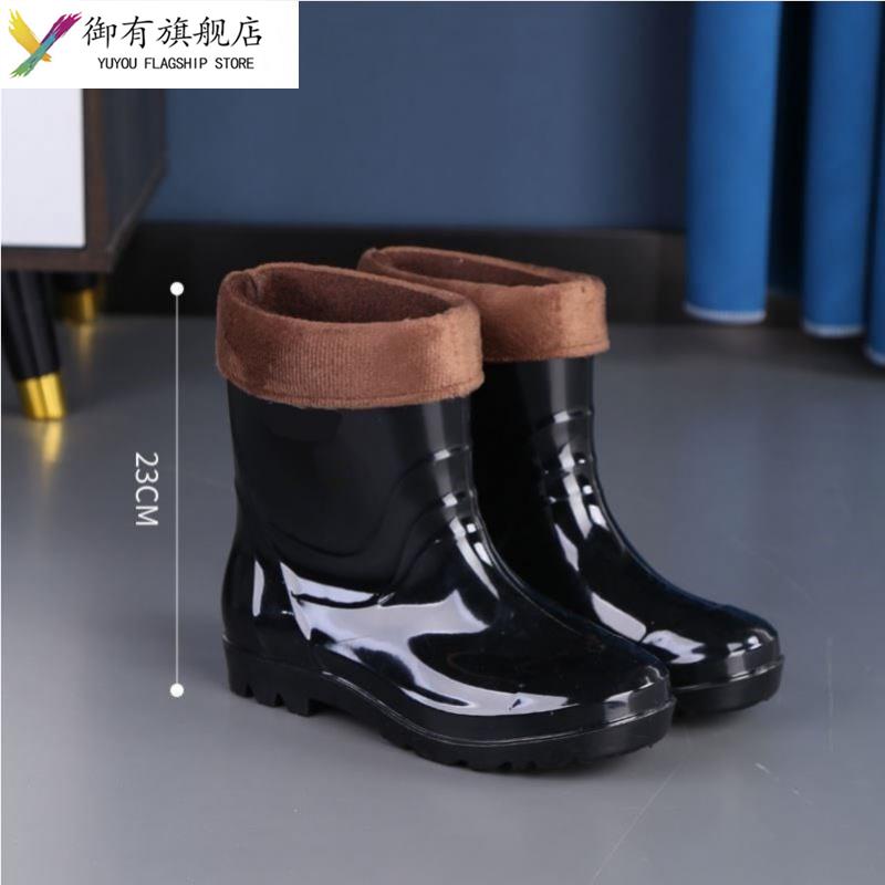 工地水鞋 男士 高筒雨靴防防滑加厚耐磨加绒 男中筒防水胶鞋 短筒雨鞋