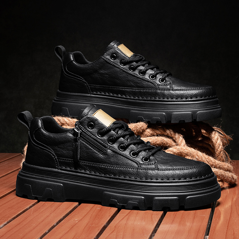 防滑耐磨工地干活劳保板鞋 男士 秋冬复古百搭真皮厚底潮鞋 工作男鞋