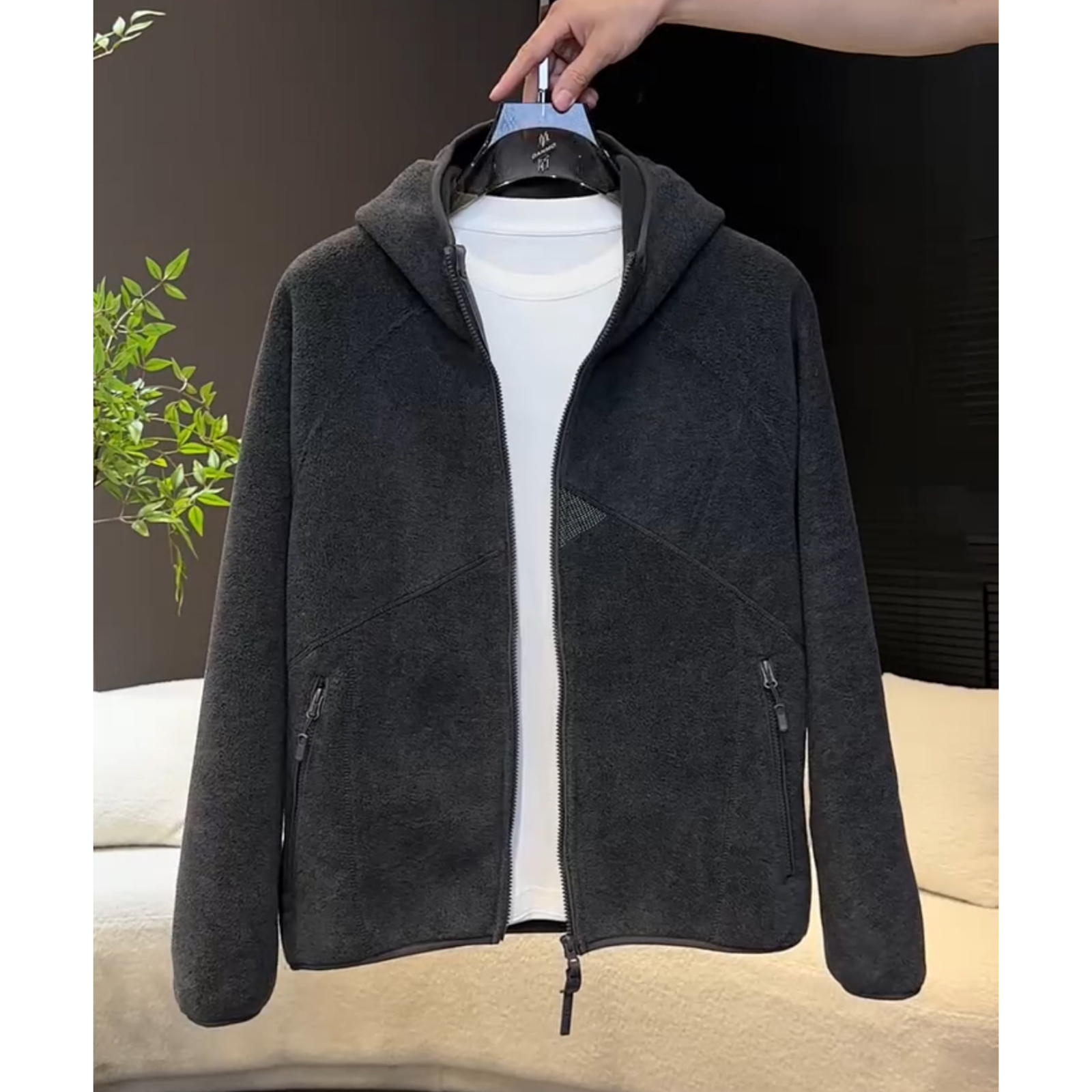 百搭休闲帅气保暖外套 时尚 网红潮流拼接摇粒绒连帽夹克男士 秋冬款