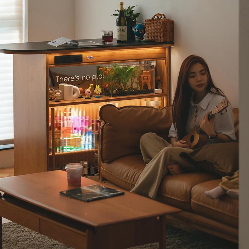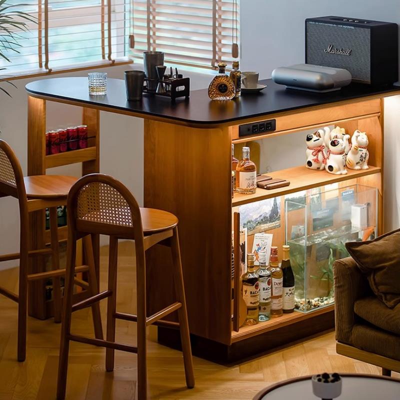 北欧吧台柜实木客厅岩板隔断岛台日式 餐边柜家用小户型储物柜酒柜
