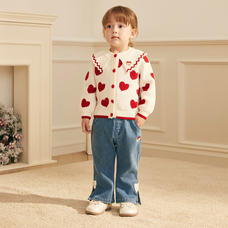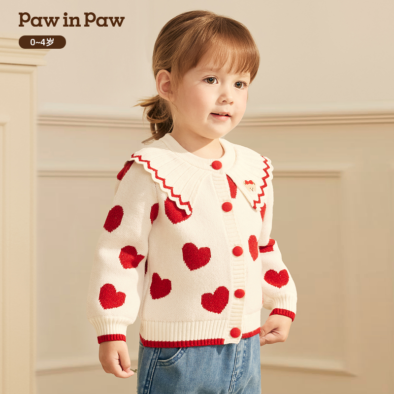 新款 25年冬季 PawinPaw卡通小熊童装 女宝宝抗静电毛织开衫 圣诞
