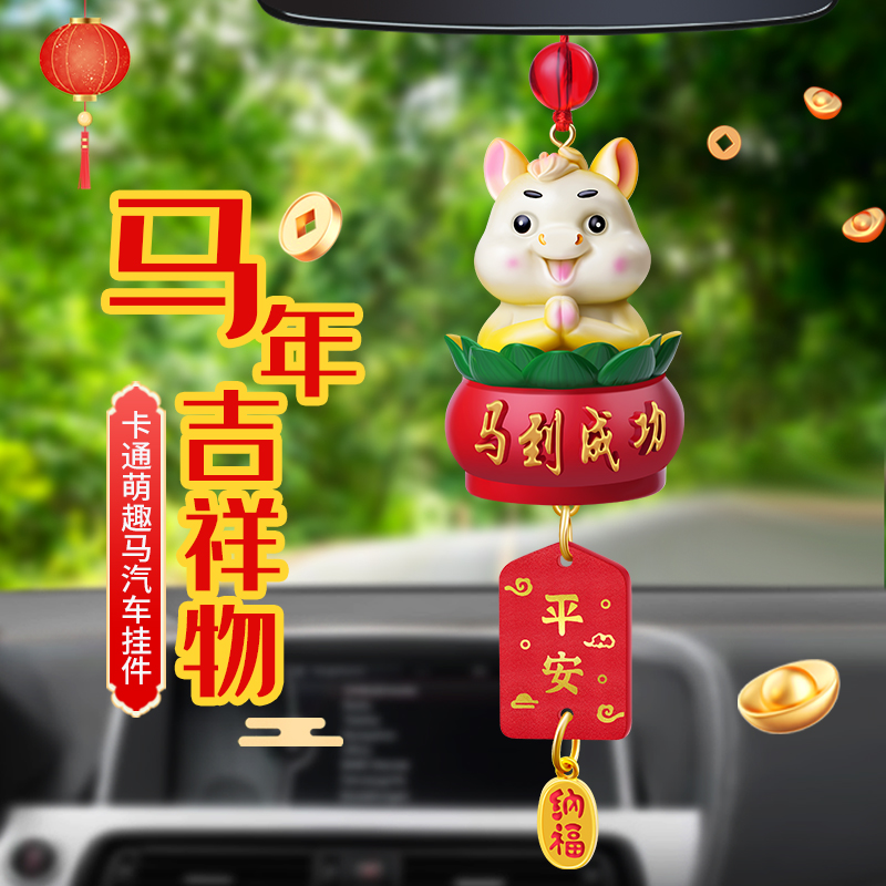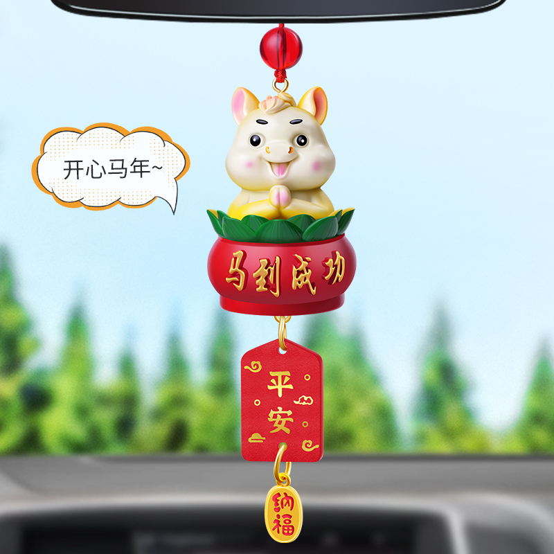 马年吉祥物汽车挂件卡通生肖属相车内挂饰车载后视镜平安牌装 饰品