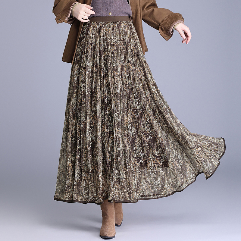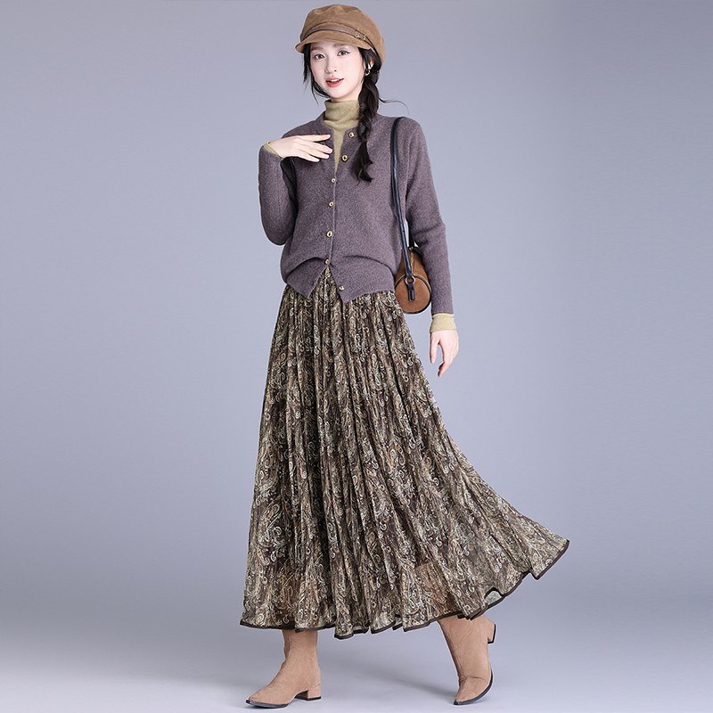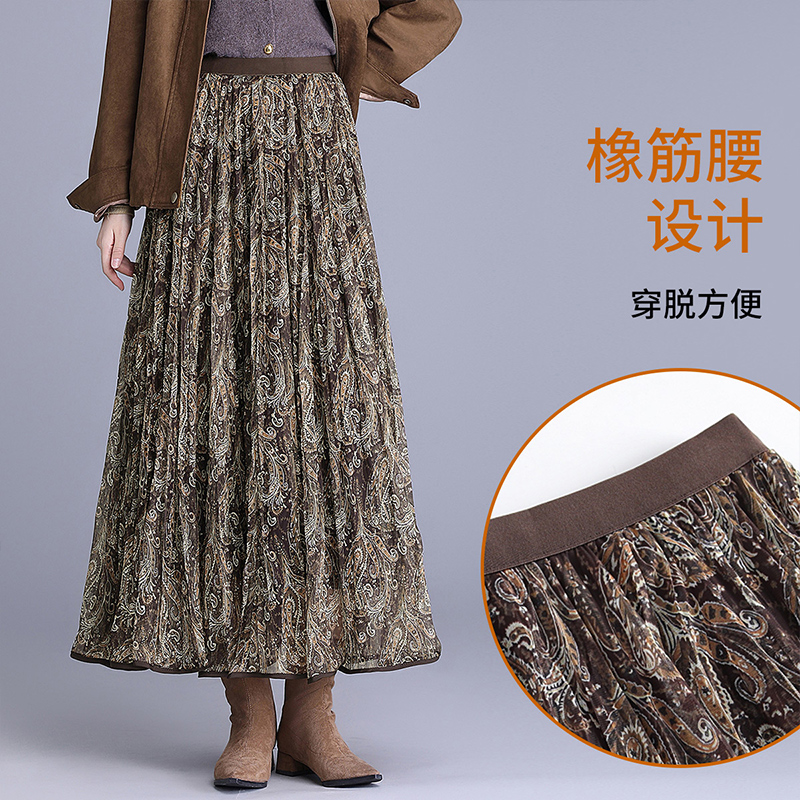 a字伞裙长裙胖mm秋冬季 高腰中长款 针织百褶半身裙女2025新款 大码